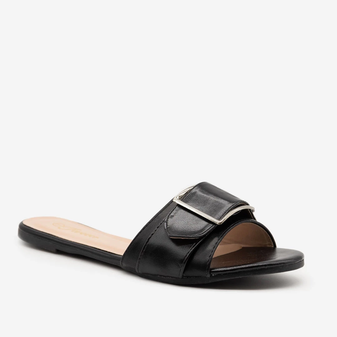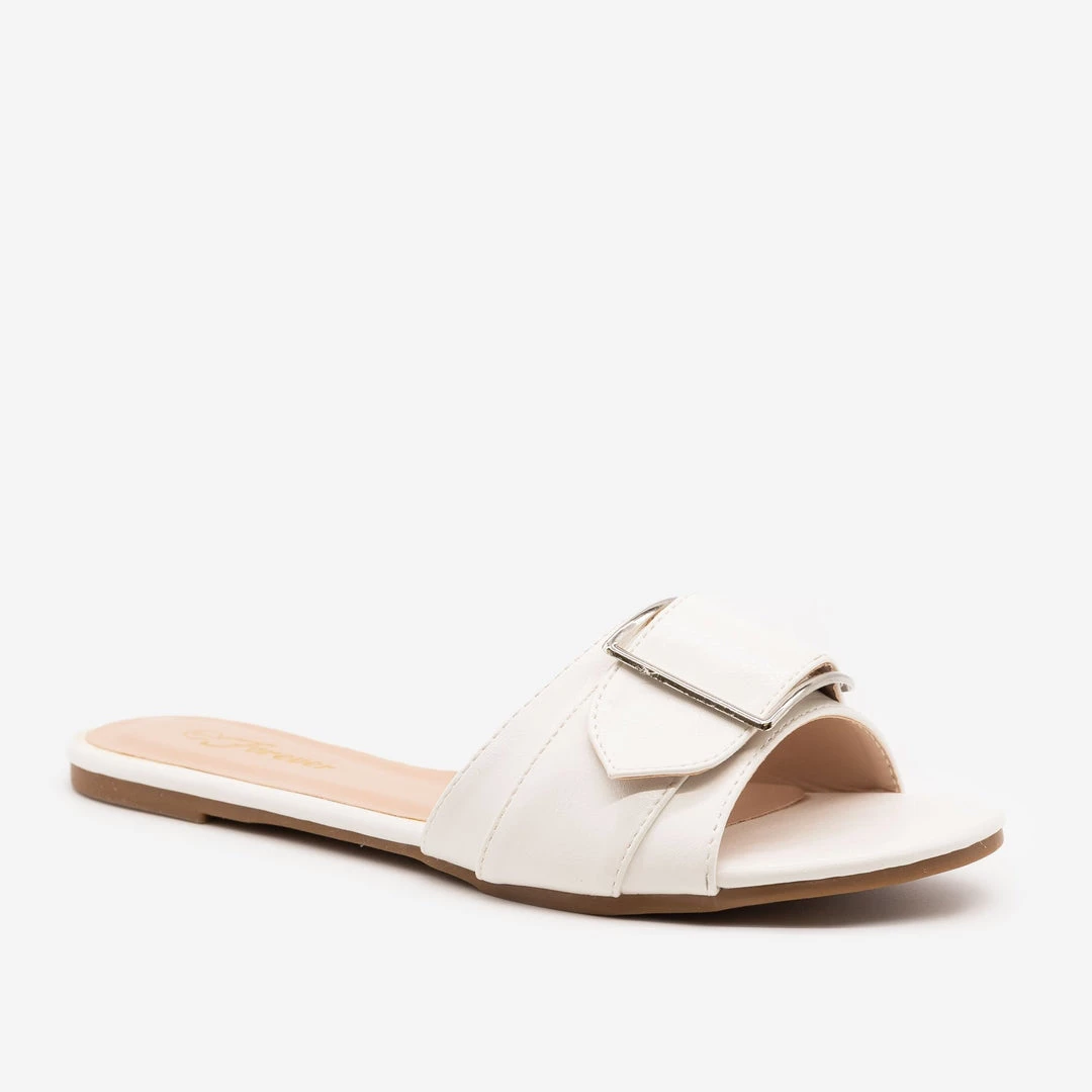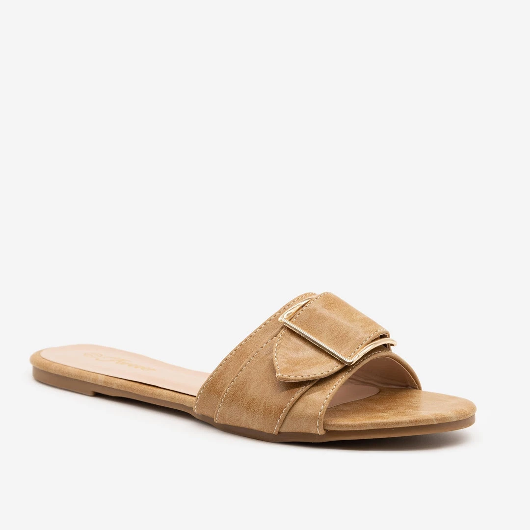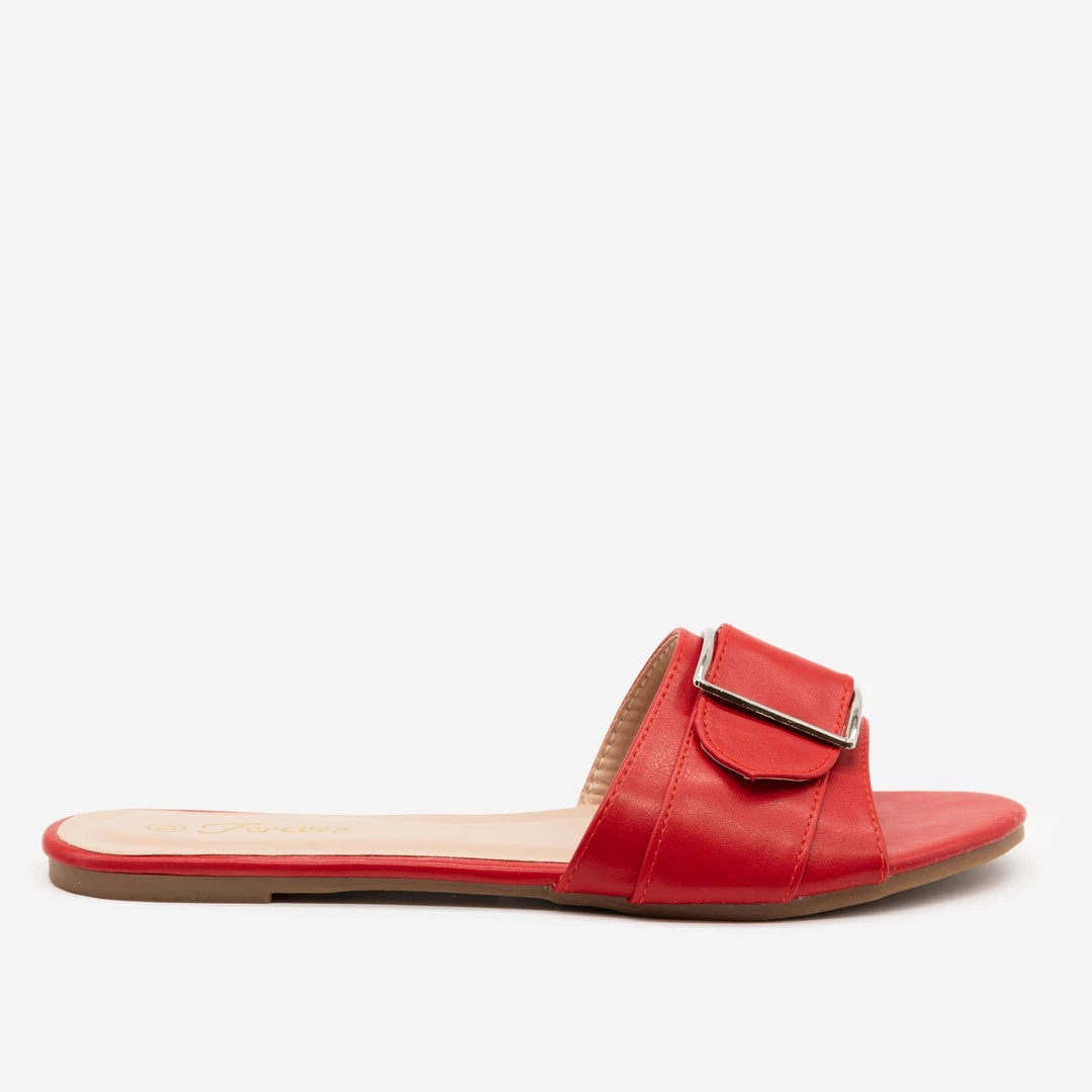 Get the perfect everyday sandal with our new Forever Aria-95 sandals! These cute sandals are crafted with a faux-leather material and feature a single thick strap with a large decorative buckle that lays across the top of the foot. easy slip-on design and open toe front create a classic and sleek sandal look. So lightweight, comfortable and stylish you’ll be reaching for them no matter the season! Pair these sandals with high-waisted bermuda shorts and a tucked in band tee for an easy everyday look.