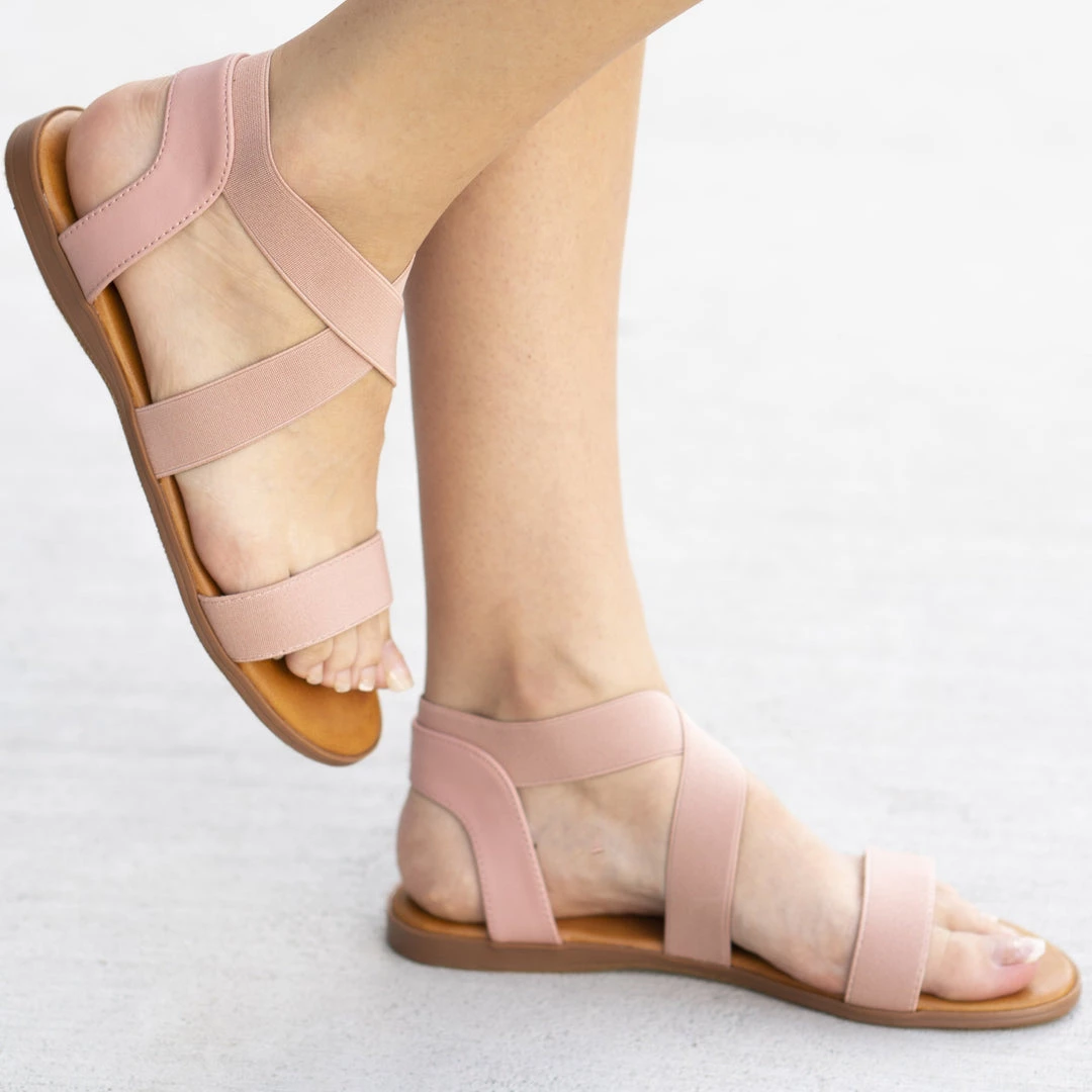Keep it cute and simple but never boring with our Forever Handiness-42 sandals! These cute sandals are crafted from a faux leather material and feature criss-cross elastic straps. The straps allow for easy on and off wear and come in solid natural colors. Lightly cushioned insole allows for comfort all day long. Pair with a white skirt and camisole for an easy summer fit!