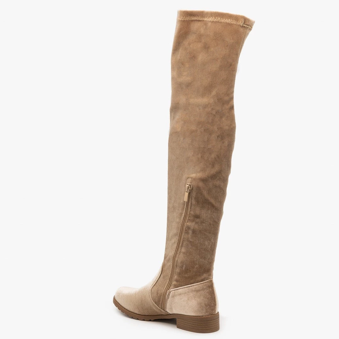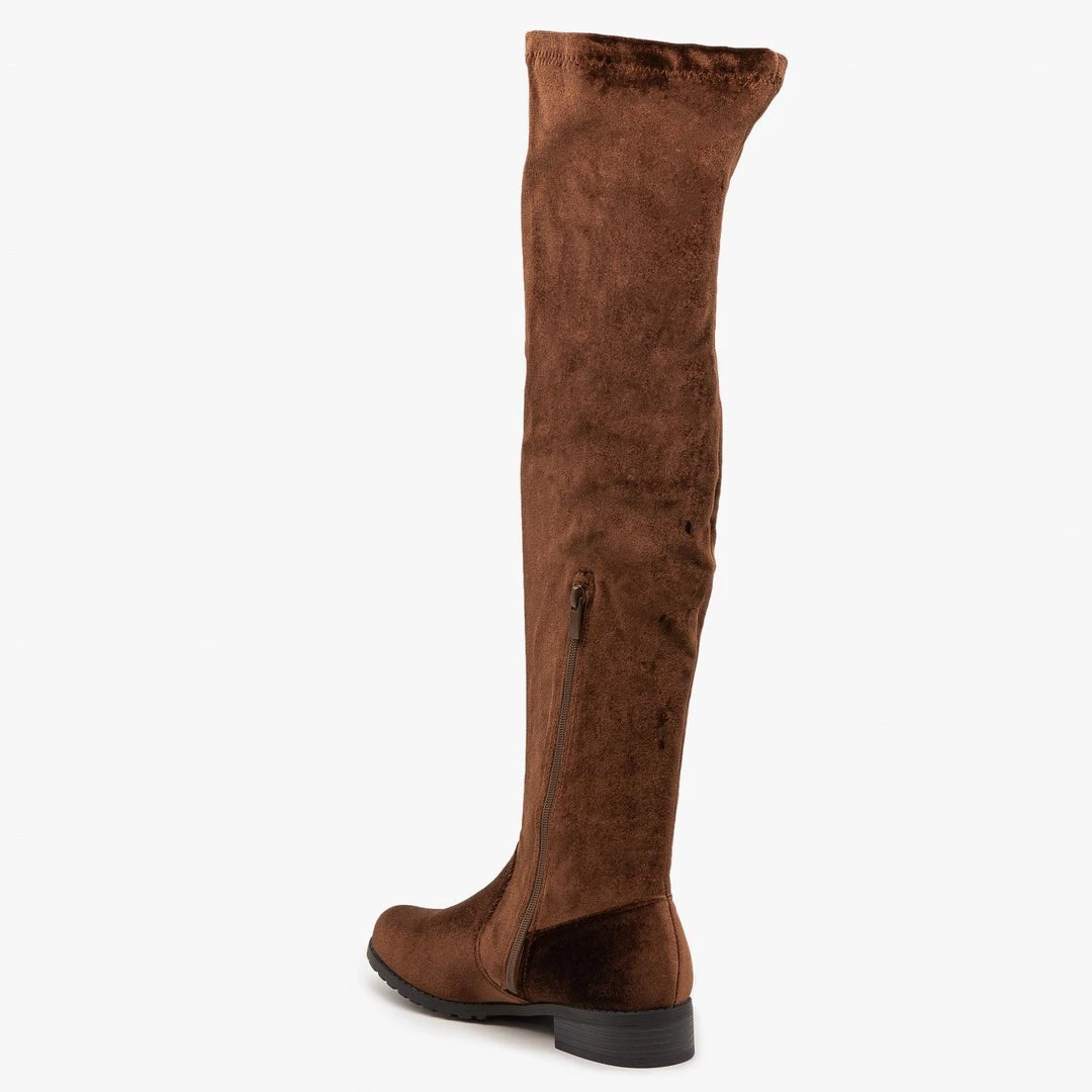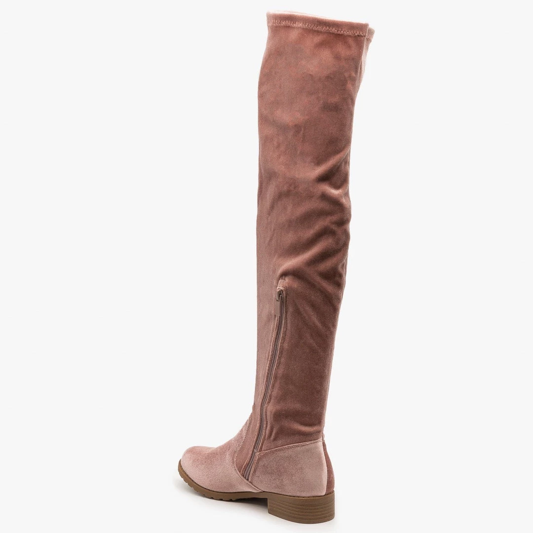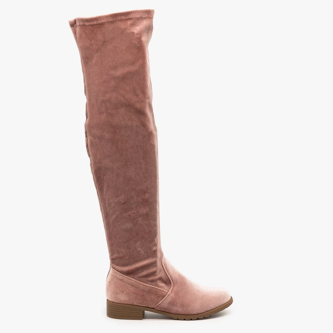 Make heads turn with the Forever Shoes Jalen-H5 over-the knee-boots! These ultra chic boots are made with faux velvet and are perfect for a night out on the town or for going to brunch with friends! Available in a variety of trendy colors, these boots are built with a ~ 1/2″ heel and have cushioned insoles, making them super comfy and great to wear at any time. These boots are stretchable and feature a side zipper, allowing you to slip them on with ease. Wear them with a sweet mini dress, or put them on over some jeans paired with a cute blouse or bodysuit, and you’ve got an outfit anyone would be jealous of! Made with all man-made/vegan materials and fits true to size.