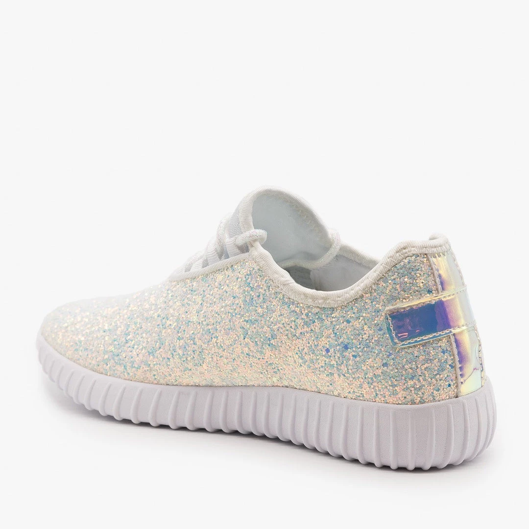 Walk a mile in these gorgeous Forever Shoes Remy-18 glitter sneakers! These beautiful sneakers are made out of a sparkly glitter body and feature a lace-up design and a rubber ridged sole. These sneakers will go great with some workout leggings or your favorite pair of distressed ankle jeans! Made with all man-made/vegan materials.