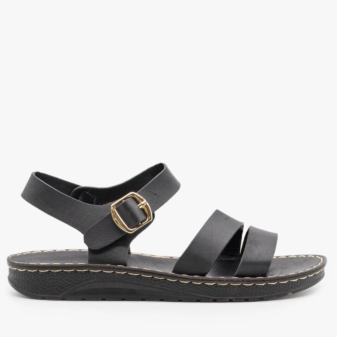 Watch your step–literally!–with these Forever Shoes Nesis-54 sandals! These trendy sandals are made out of faux leather and feature an adorable strappy design that goes over the top of the shoe. The ankle strap also buckles on the side, ensuring maximum style, support, and comfort. Wear these sandals with a pair of distressed raw hem jeans and a knotted tee for a cool summer look! You can even pair these shoes with a vintage graphic tee tucked into a button-up denim skirt for a sweet and sassy look! Made with all man-made/vegan materials.