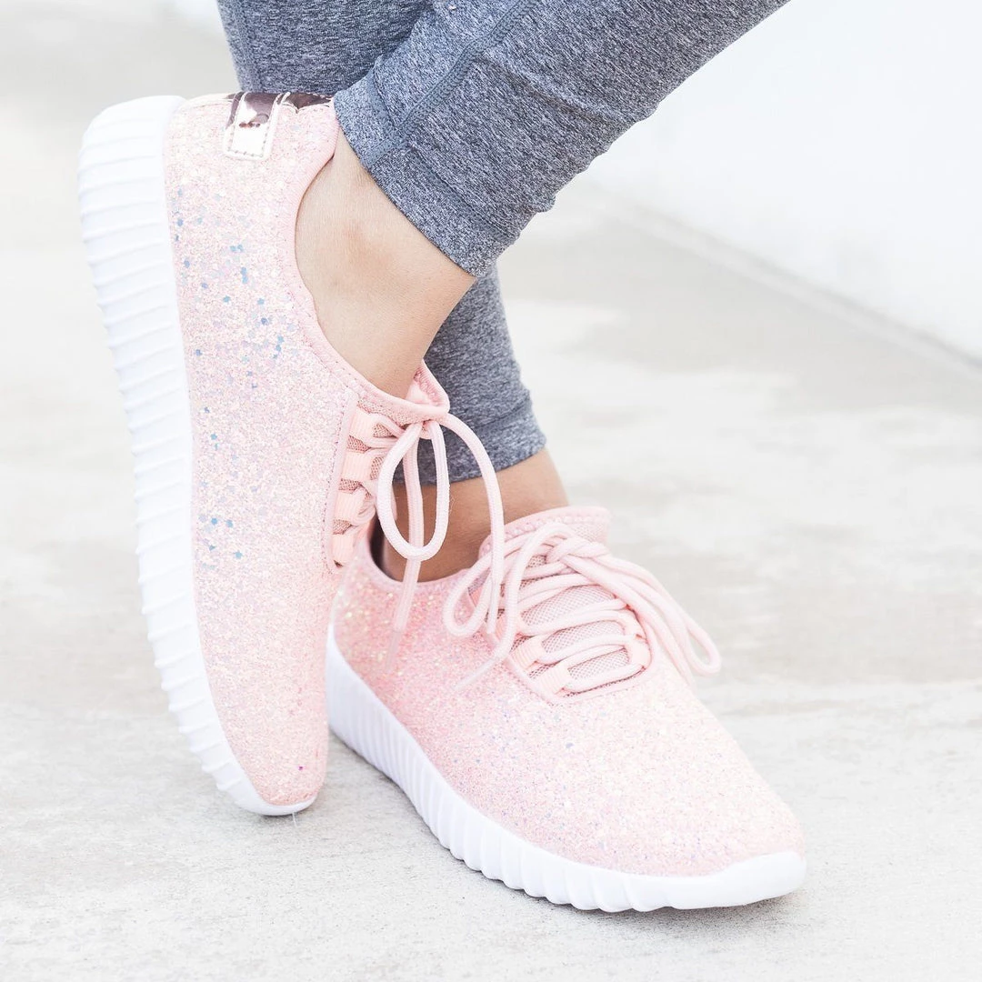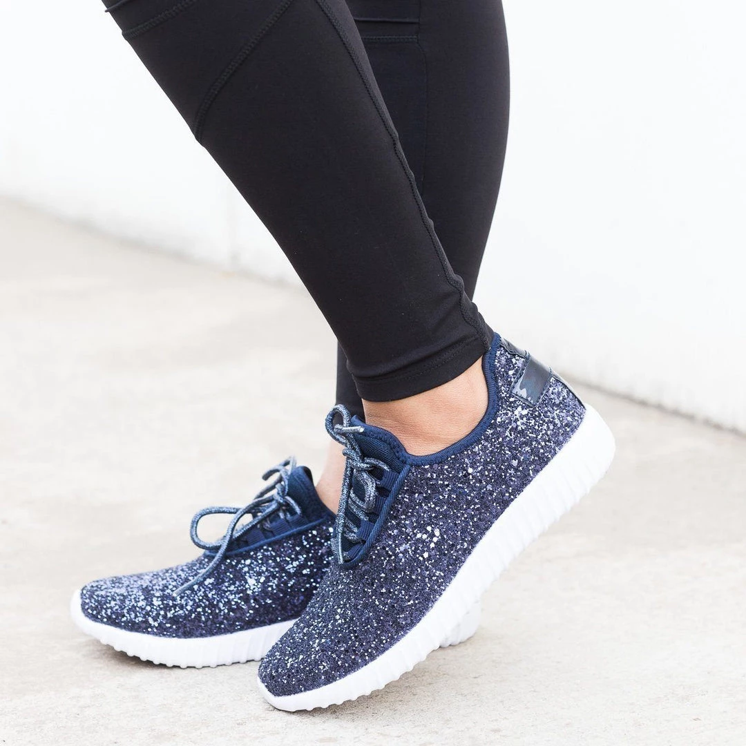 Be true to the fit game while still keeping it glam in these super cute and comfy glitter athletic sneakers! These Remy-18 glitter sneakers are absolutely the best. They feature a closed/rounded toe, cushioned insole, and a rigid sole. Style with your favorite workout clothes for a vibrant look. These have been running true to size!