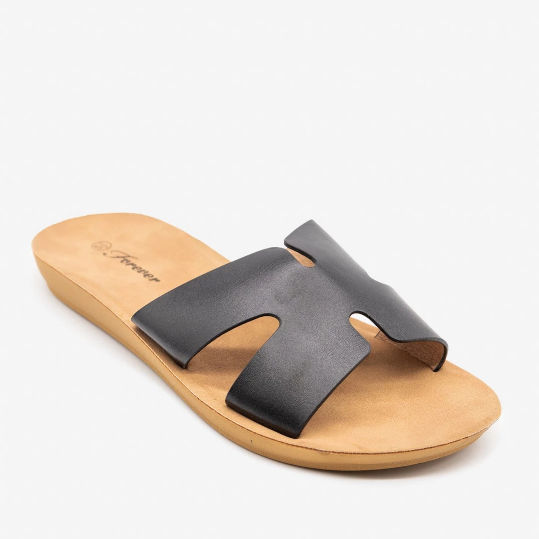 Get ready for summer with these lovely Forever Shoes Reina-1 sandals! Made out of faux leather or faux suede (leopard), these sandals feature an easy-to-wear slip-on style and a chunky “X” design. Available in a variety of beautiful colors, these sandals will go great with any outfit you put together, and are perfect for when you’re running out the door! Made with all man-made/vegan materials.