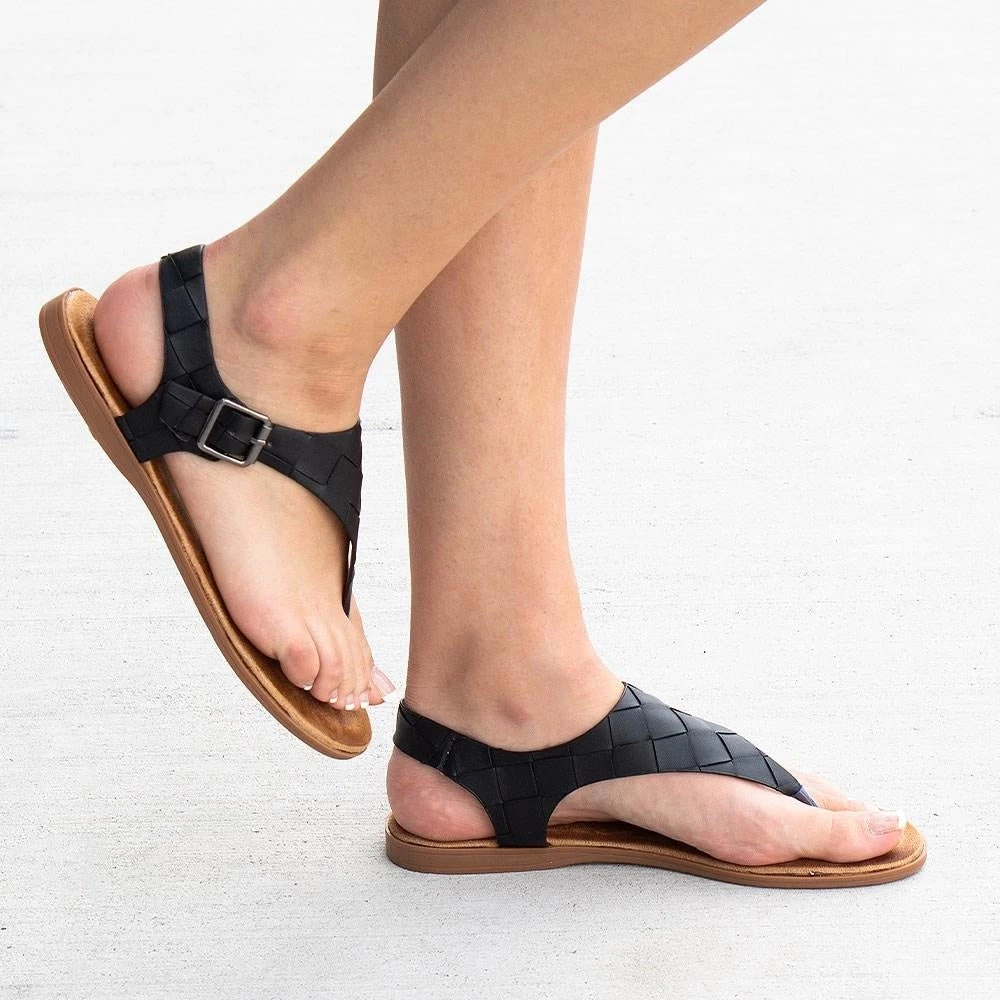 These Forever Handiness-35 thong toe style sandals are perfect for the season! The woven front open toe strap compliments your pedicure. While having a clasp on the ankle strap for easy on-and-off access. Pair these with shorts and a cute graphic tee. All man made vegan material shoes. <3
