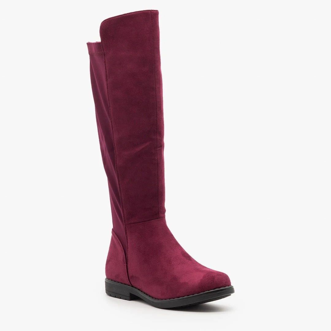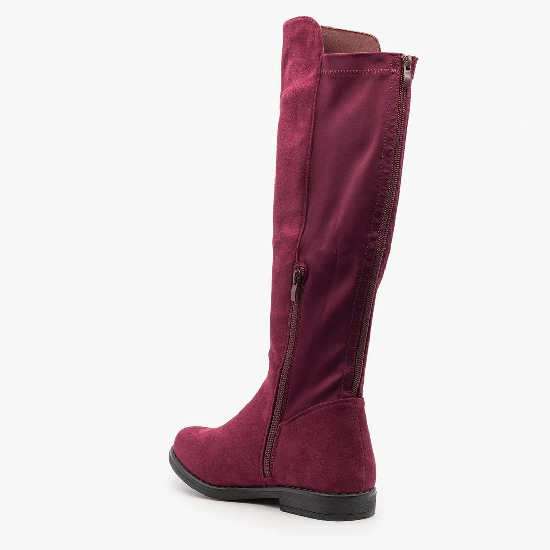 Turn heads in these gorgeous Forever Shoes Rosina-02 boots! These boots are crafted with faux suede and feature a nylon back that adds flexibility, comfort and style. They also feature a low block heel, classic rounded toe and a body that rises to below the knee. Slip these boots on and off using the back zipper and half-length inner side zipper. Available in classic taupe and black as well as a chic burgundy, these boots look great with so many different looks! Pair them with skinny jeans and a light sweater for a super easy go-to outfit! Made with all man-made/vegan materials and runs true to size.