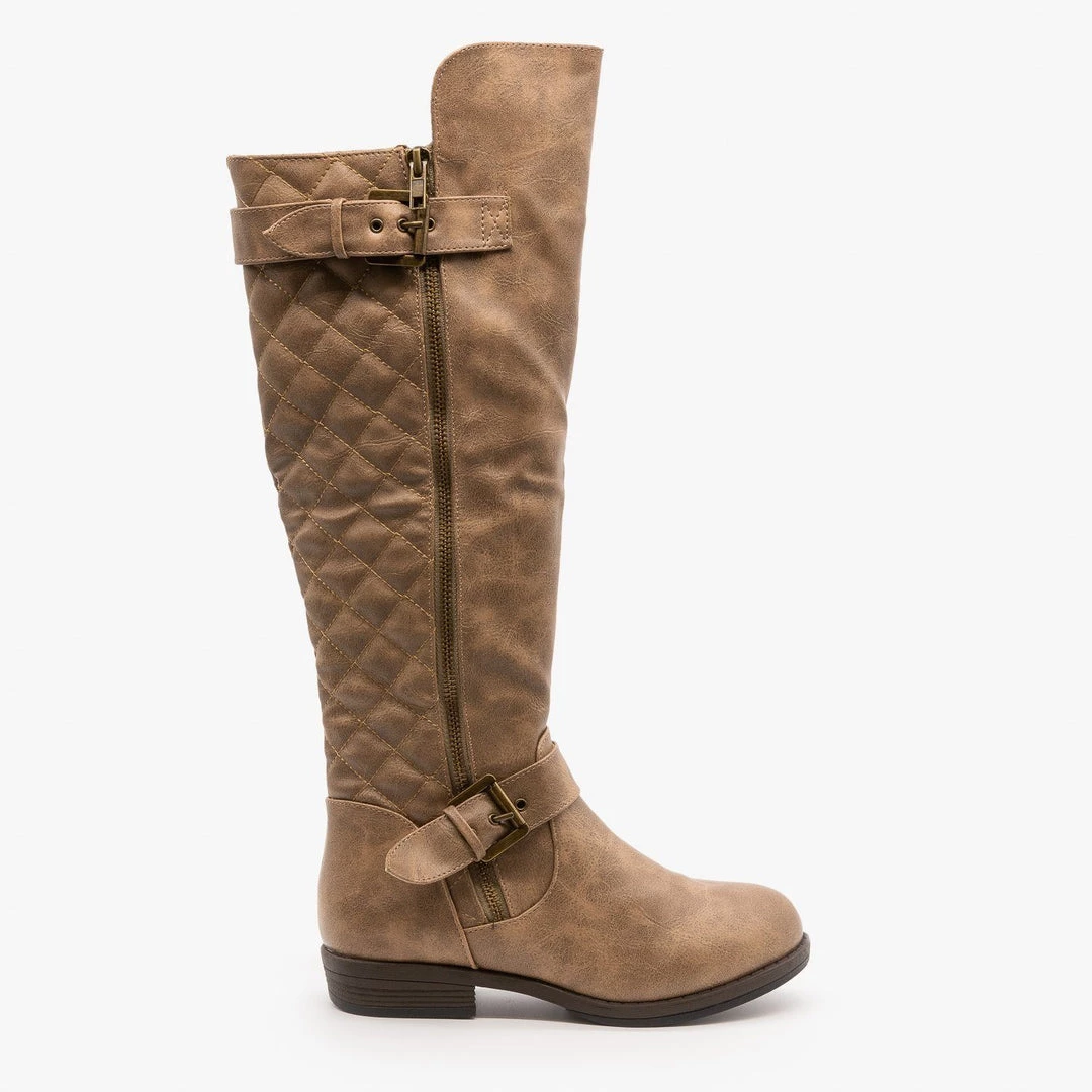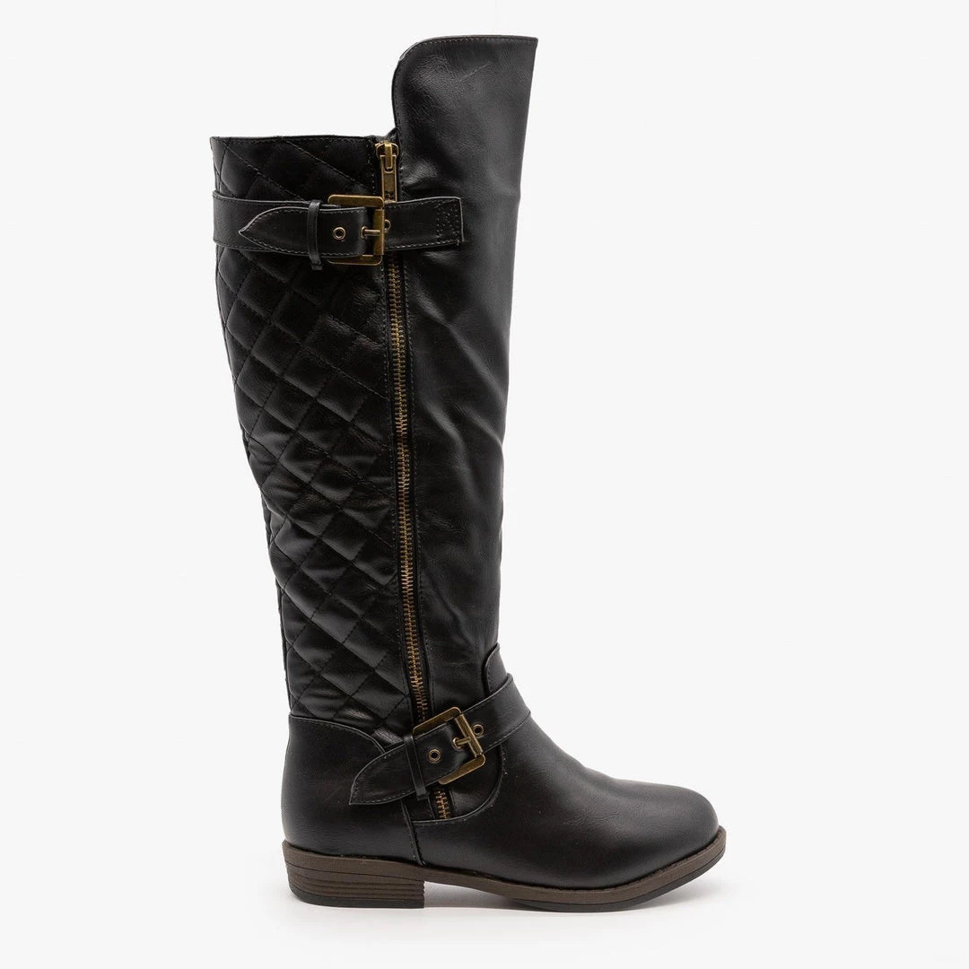 Glaze Buckled Quilted Riding Boots Newest Arrivals