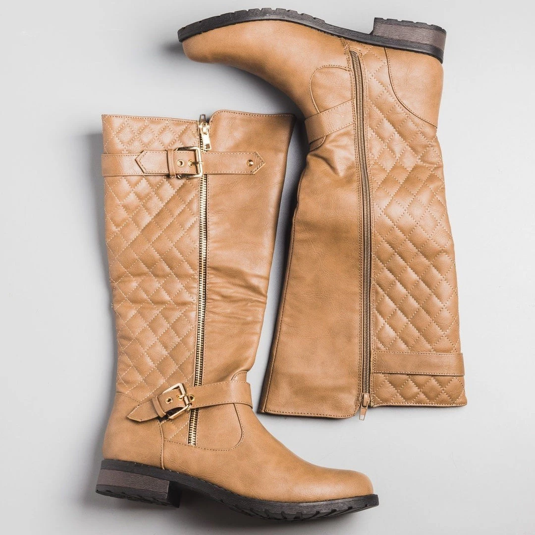 Glister Faux Leather Quilted Riding Boots Newest Arrivals