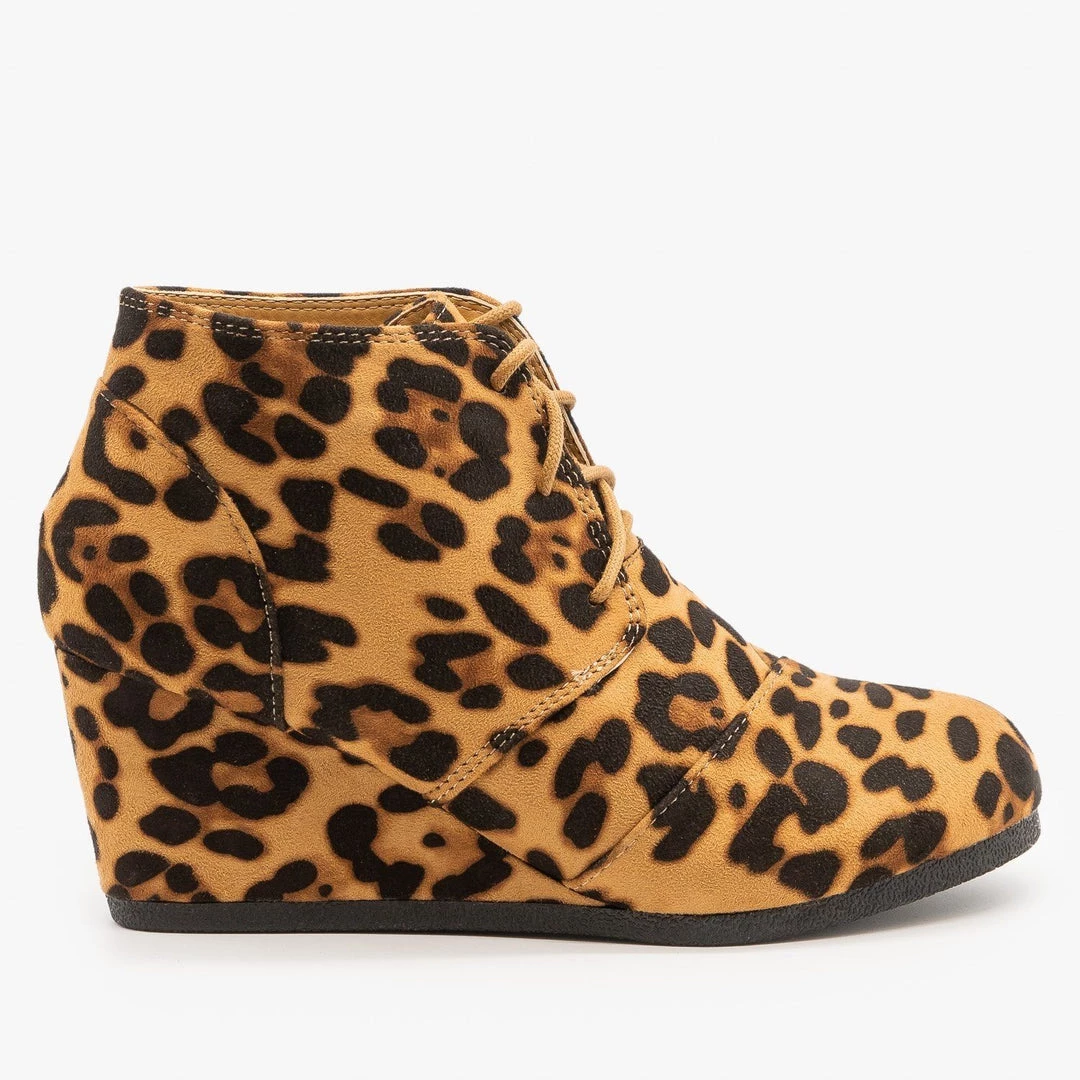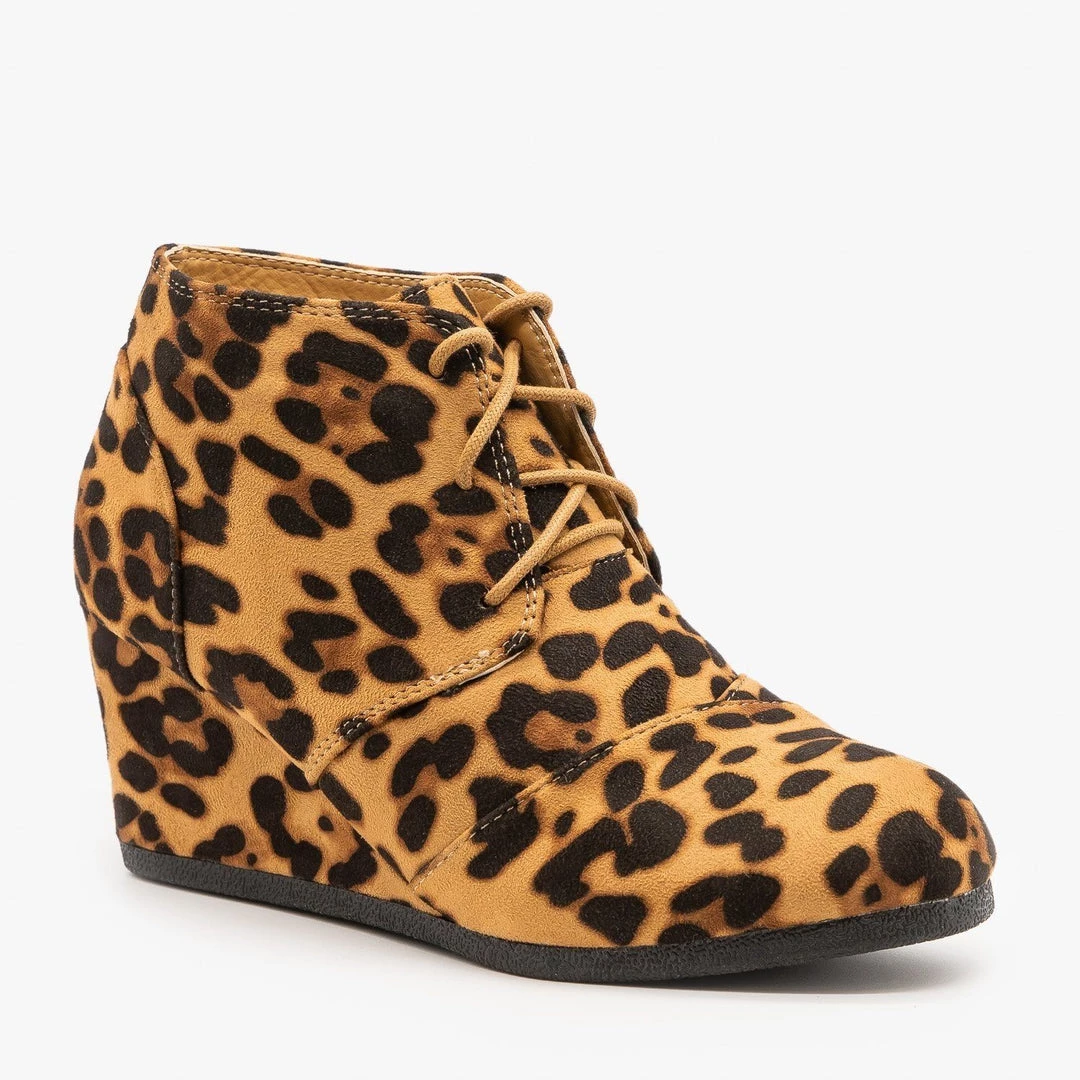 Lovmark Newest Arrivals Leopard Print Wedge Lace Up Booties