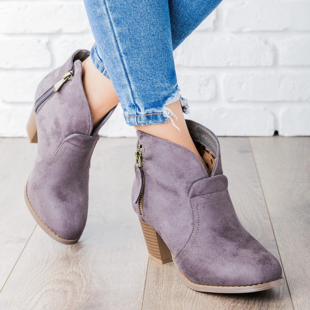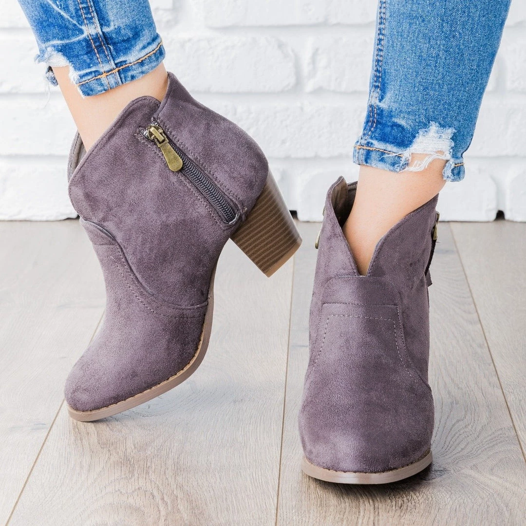 Perfectly crafted Lovmark Jervis-10 V Cut ankle boots are right on trend! They feature a side zipper detail and 3.5″ stacked heel. Made of faux suede. Made with all man-made/vegan material and runs true to size.