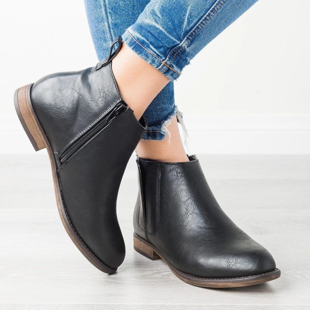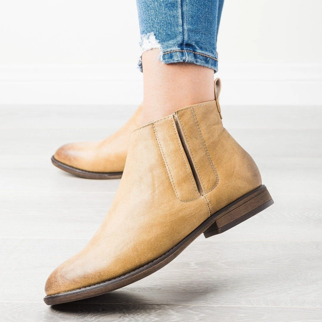 Fall in love with these Mata Shoes Recall-1 ankle booties! Made out of faux leather, these booties feature a ~1″ heel and a rounded toe, making these shoes great to wear all day, everyday. The interior side zipper and side slit also makes it easy for you to put these shoes on and take them off. Finishing off these shoes is the trendy burnished toe and heel, giving these shoes a vintage, distressed look. Wear these booties with a pair of ankle jeans and a long, flowy cardigan layered over a knotted graphic tee for a casual, but cute fall look! Made with all man-made/vegan materials.