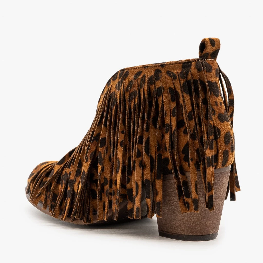 Mata Center Cut Leopard Fringe Booties