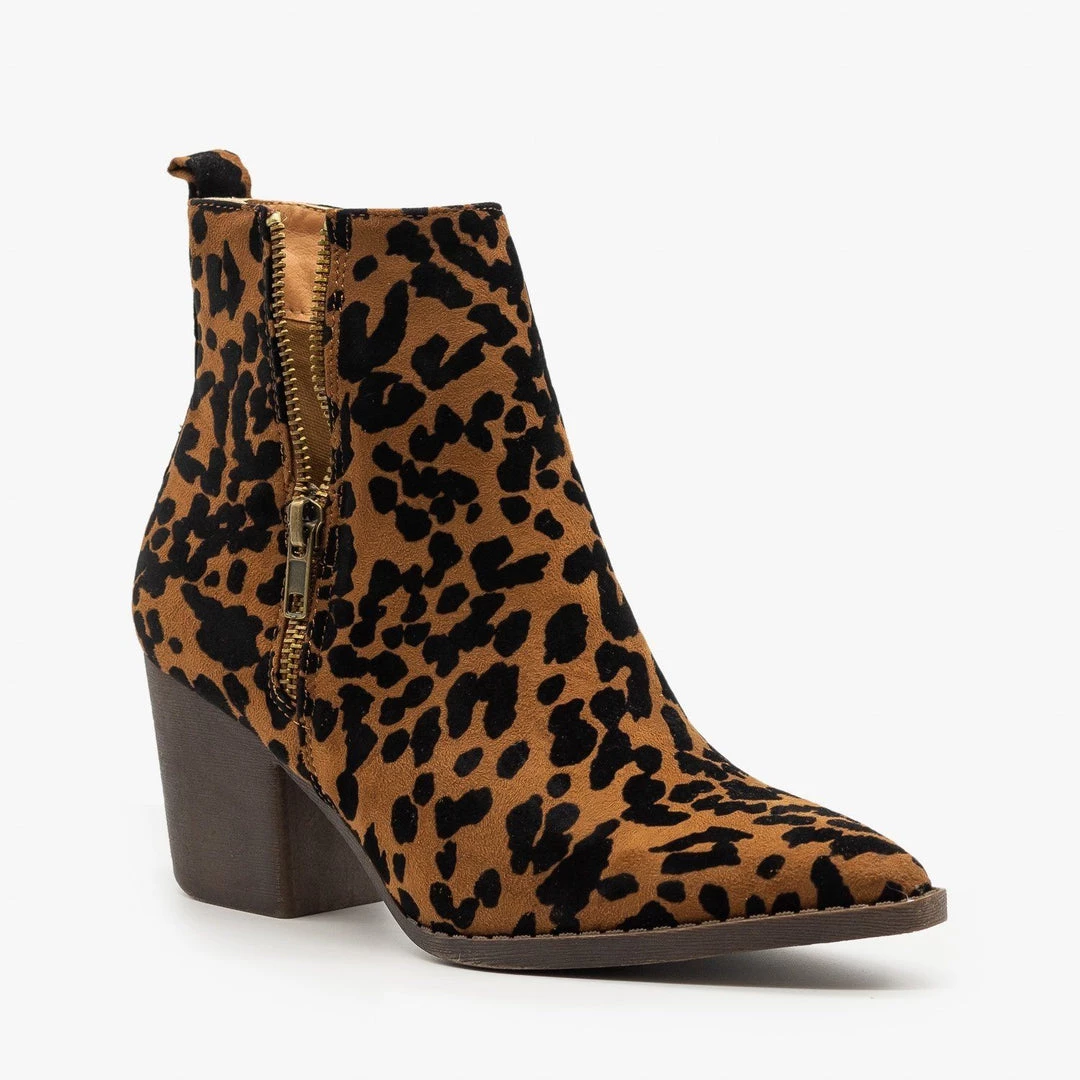 Mata Leopard Side Zippered Booties