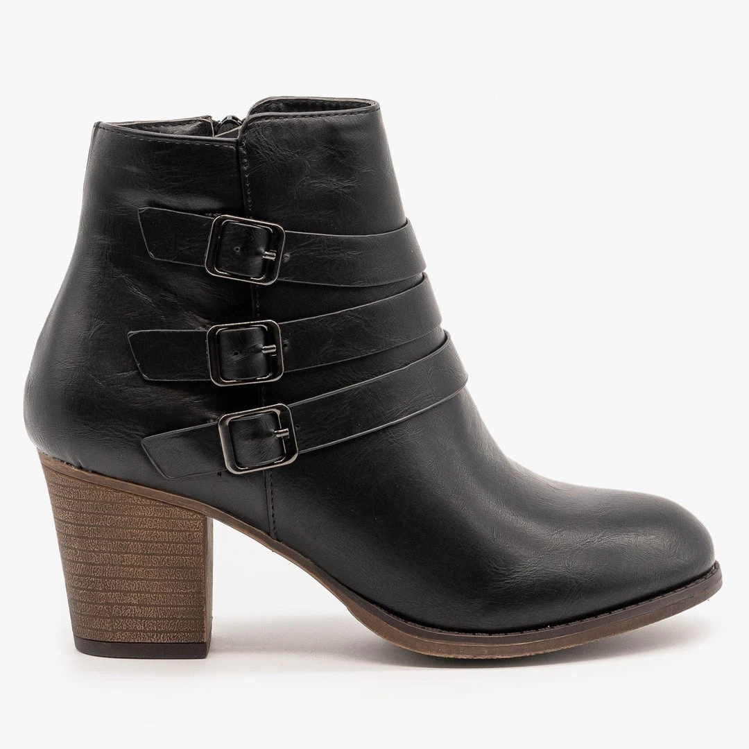 Kick up your heels in the Mata Shoes Ankle-2 booties! Crafted out of faux leather, these gorgeous booties feature a 3″ block heel and a posh almond-shaped toe. The burnished toe and heel design gives these shoes a lovely vintage look, while the interior side zipper makes it easy to put these shoes on and take them off. Finishing off these beautiful ankle booties is the edgy buckled triple strap design. Wear these booties with some high-waisted ankle jeans and a basic bodysuit for a cute and trendy outfit! Made with all man-made/vegan materials.