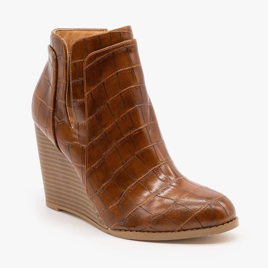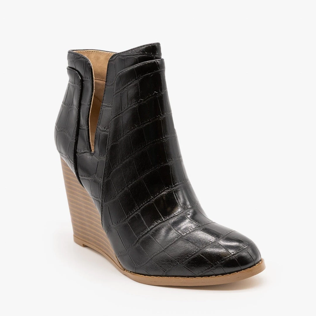 Mata Posh Side Cut Wedge Crocodile Booties Newest Arrivals