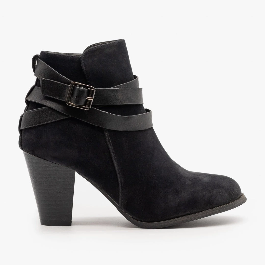 Kick up your heels in these sassy Mi.im Shoes Urban-02 ankle booties! Designed with faux suede, these booties feature an approx. 3″ stacked heel and a stylish almond shaped toe. A decorative black faux leather belt wraps around the ankle of the bootie three times and then is buckled on the outside, giving these booties a little edge! Pair them with cuffed skinny jeans, a boxy sweater and a beanie for a cute fall look! Made with all man-made/vegan materials and runs true to size.