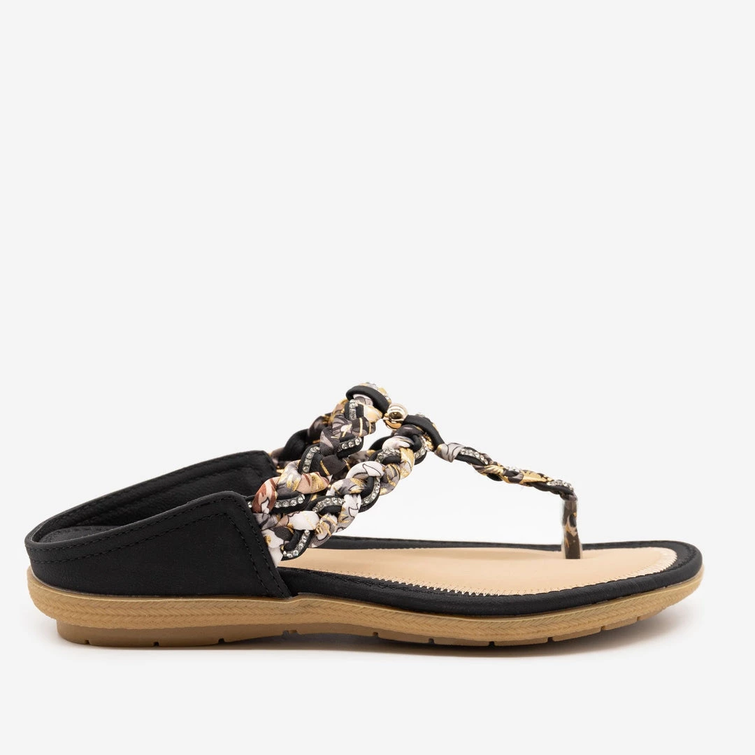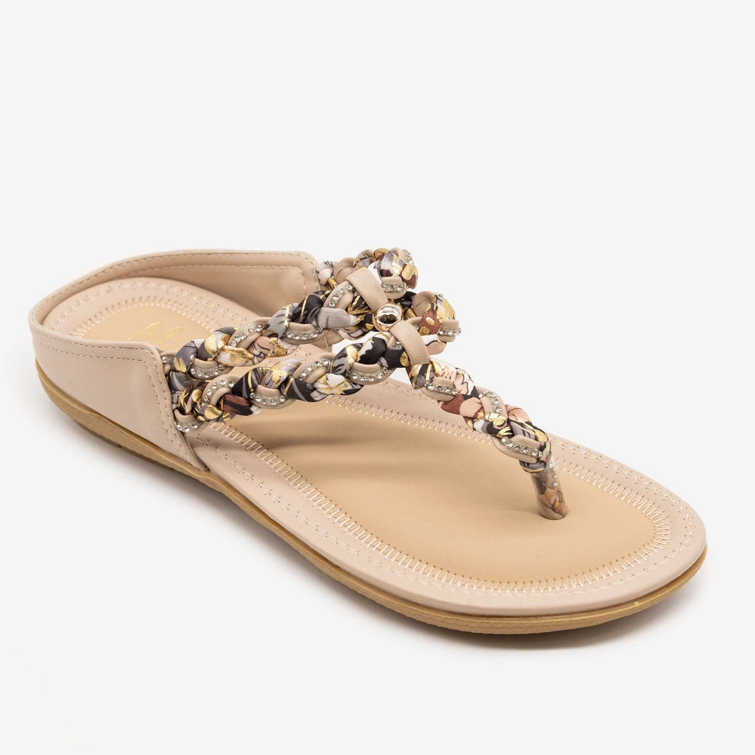 Stay classy in our new Mixx Shoe El Pesa! These gorgeous sandals are crafted with synthetic material and feature a double braided strap across the ankle with decal rhinestones and beads that flow into a classic thong shape. The material is a soft satin with a beautiful floral design. Lightly padded these sandals provide the perfect amount of comfort for everyday wear. Pair these sandals with smart pants, dress shirt and blazer for a comfortable business casual fit! These shoes are man-made with all vegan materials. Take your perfect size as these shoes run true to size.