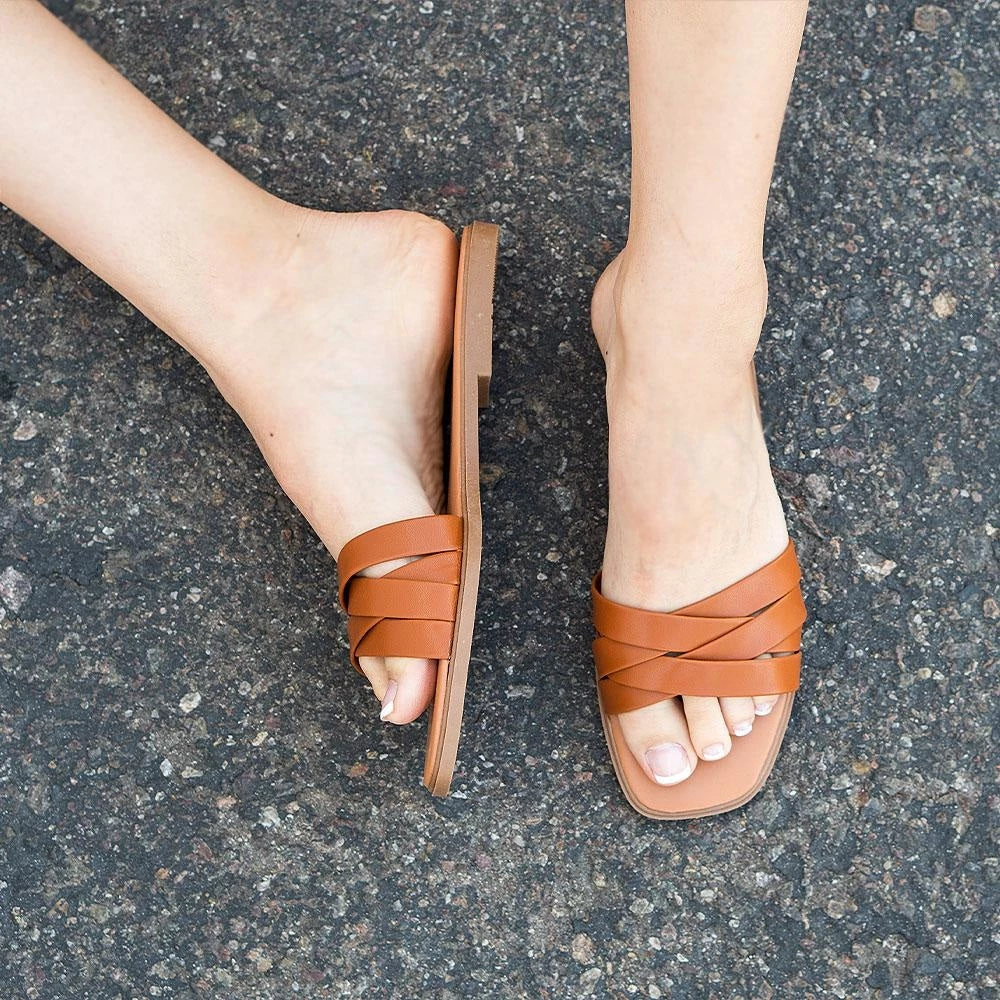 Freshen up your wardrobe with our Mixx-Lilo sandals! They have a classic slip-on design with open-toe front and a unique overlapping strap design. The band is thick but comfortable, perfect for all day wear with a trendy square-toe shape. Pair with dark wash denim mom jeans and open-back bodysuit to compliment the look.Â