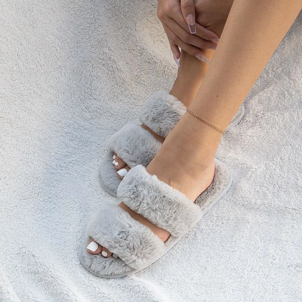 Stay cozy and comfy at home and on the go with our Mixx Fiona slides. These comfortable slides are crafted with a faux-fur material that covers the two thick bands that cross the top of the foot. The insole is lined with the same material and creates a soft and cushioned feel while easy slip-on and open to front make it the perfect slide for all day wear. Pair these slides with joggers and a crop top or sweater for a simple but cute fit.Â