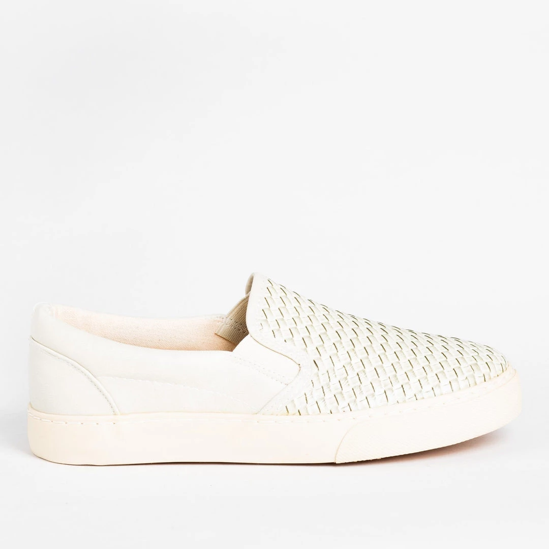 Step out and about in these Modern Rebel Shoes Mini slip-on sneakers! These sneakers are beautifully crafted out of faux leather and feature an easy-to-wear slip-on design, making these shoes perfect to wear all day, everyday. The basketweave design gives these shoes a lovely finishing touch, while the rubber sole provides extra support and grip. You can wear these shoes with some high-waisted ankle jeans and a basic bodysuit for the perfect everyday look! Made with all man-made/vegan materials.