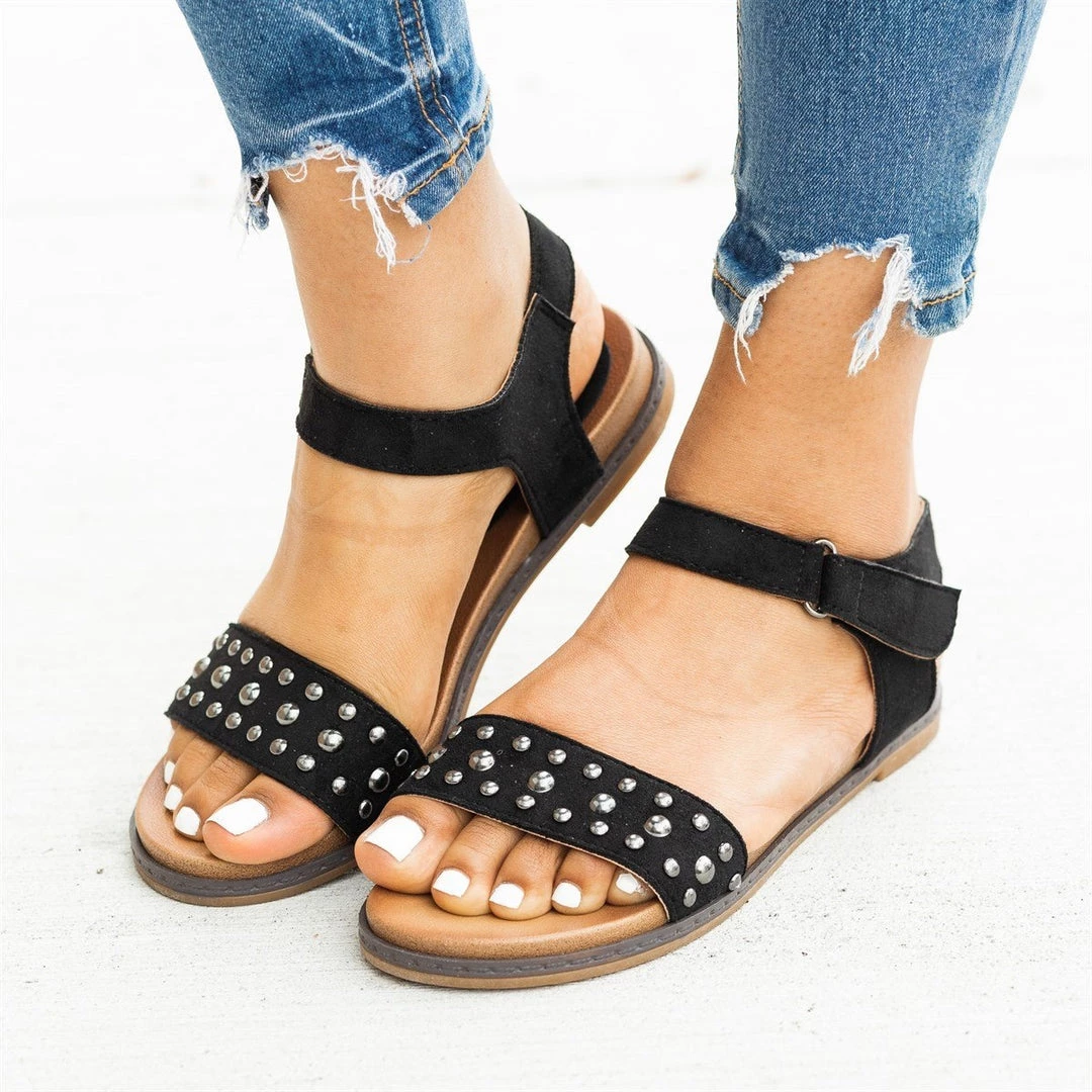 Fall in love with these super cute Montecucco Shoes RQ-F9019 sandals! Made out of faux leather, these sandals feature an easy-to-wear slip-on style and a velcro ankle strap for easy on/off access. The studded design also gives these sandals an edgy look. Wear these sandals with a pair of distressed raw hem ankle jeans and a vintage band tee for the perfect casual weekend outfit! Made out of all man-made/vegan materials.