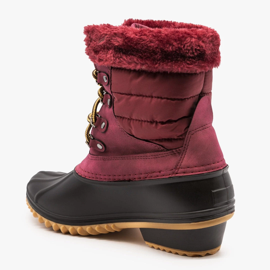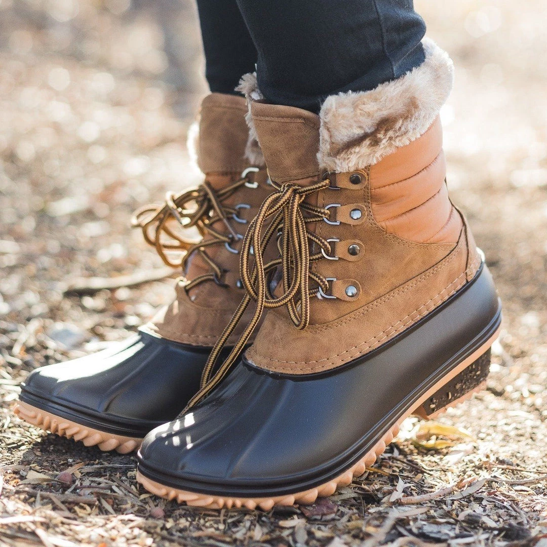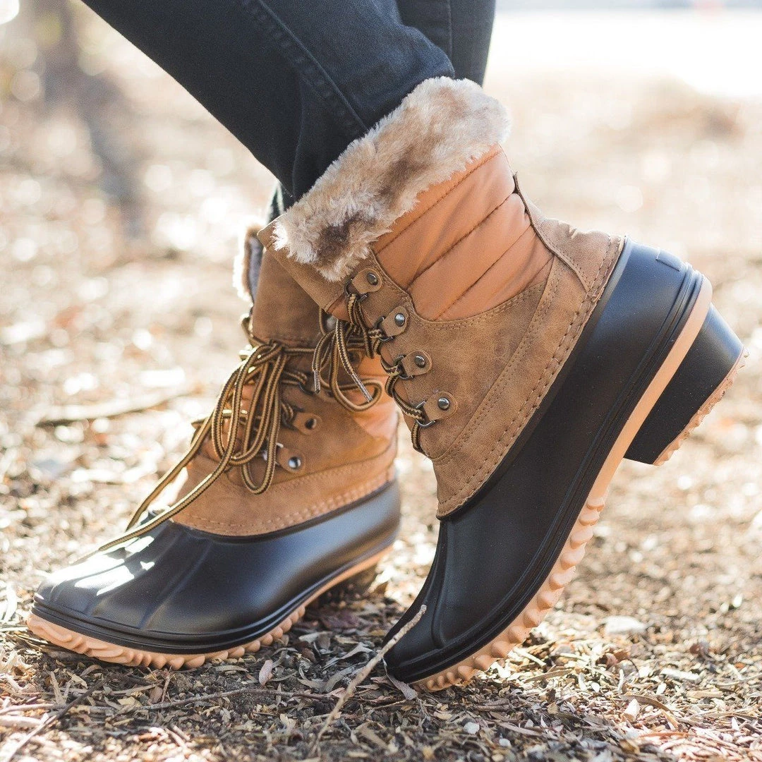 Step out in style and comfort in the Nature Breeze Shoes Nova-01 duck boots! These adorable boots are mid-calf design and features a faux fur-lined top and a padded back ankle. The 1″ heel and lace-up style make these shoes great for wearing all day, rain or shine! The ridged rubber soles add some extra grip to the bottom, ensuring maximum support for when you’re walking in the rain. Available in different colors, these shoes are great for adding an adorable twist to your cold weather outfits. Wear these with a pair of dark wash jeans or some black tights and you’ve got a look that’s both sweet and cozy all in one! Made with all man-made/vegan materials and runs true to size.