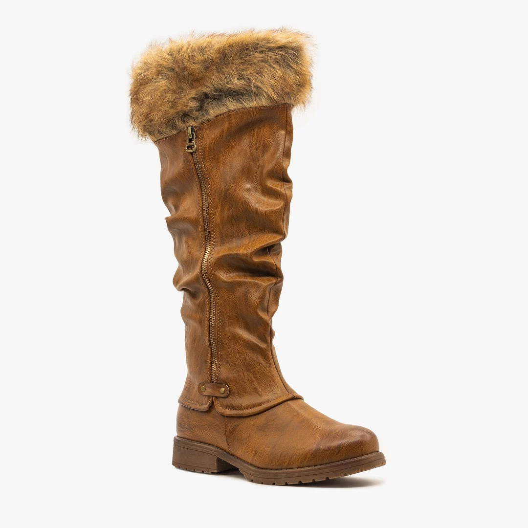 Nature Breeze Faux Fur Cuffed Slouchy Boots