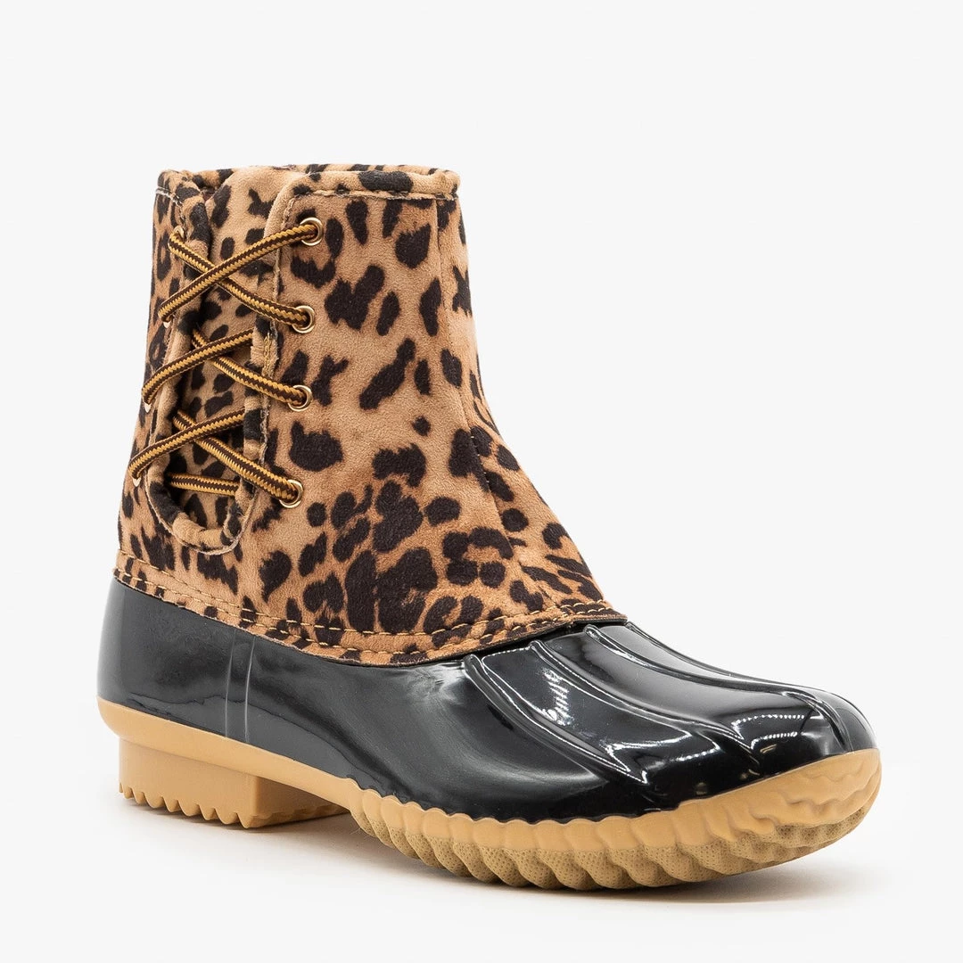 Nature Breeze Newest Arrivals Animal Print Side Laced Duck Boots
