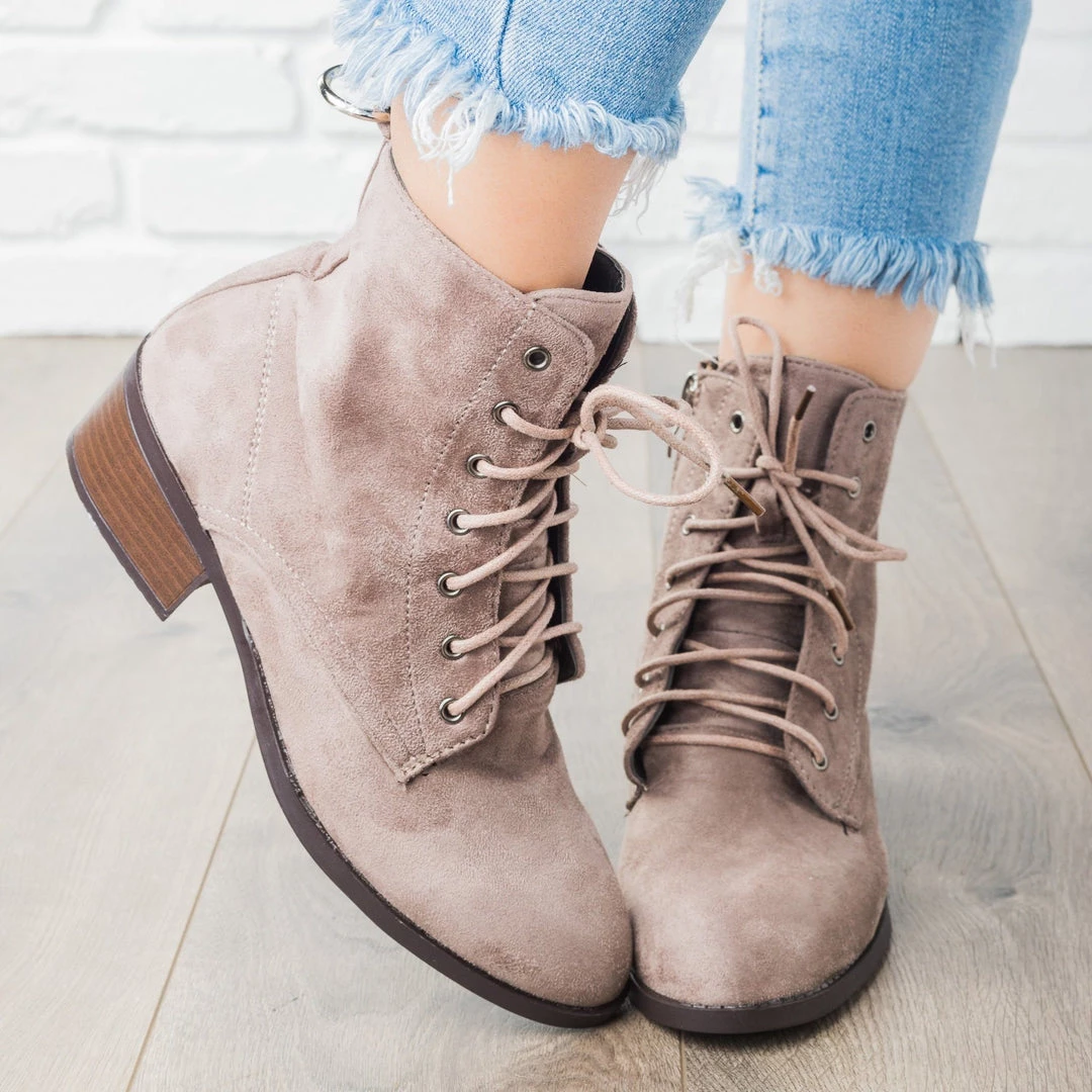 Transition into fall with these gorgeous lace-up boots! The Kennedy-01 features a rounded toe, lace-up front, and a 1.5” stacked heel. The faux suede gives a soft, autumn look and these are completed with a side zipper. These booties are perfect for completing your fall/winter outfits in style! Made with all manmade/vegan materials and runs true to size.