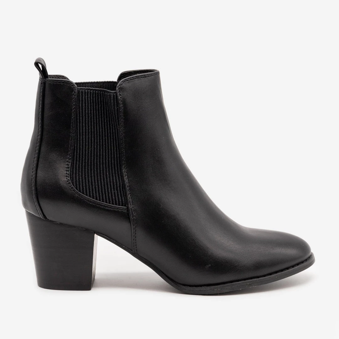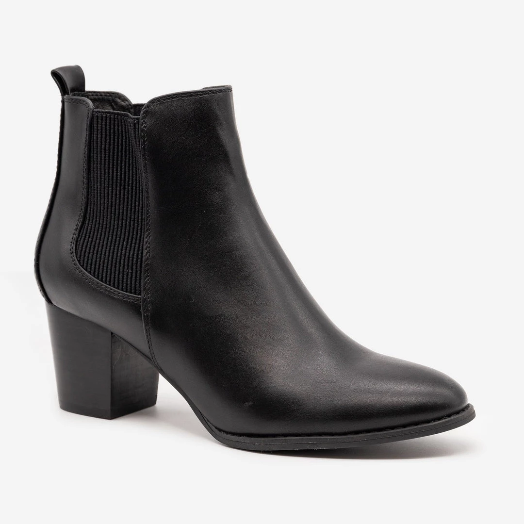 Get the perfect bootie made for any weather with our new Novo Jakob heeled ankle bootie! These shoes feature a full faux leather body and side stretchy ribbed material for perfect comfort and style all day long. These booties feature an approx. 2.5” inch block heel and almond toe available in black, taupe and tan! For the perfect fall look pair these gorgeous heeled boots with a fitted skirt and turtle neck long sleeve! These shoes are man-made with all vegan materials. Take your perfect size as these shoes run true to size!