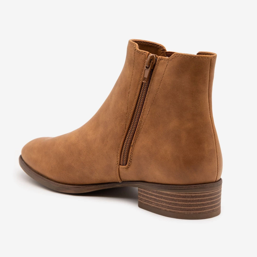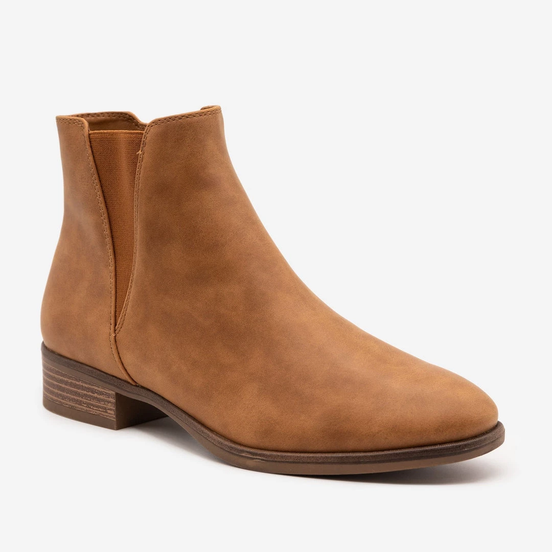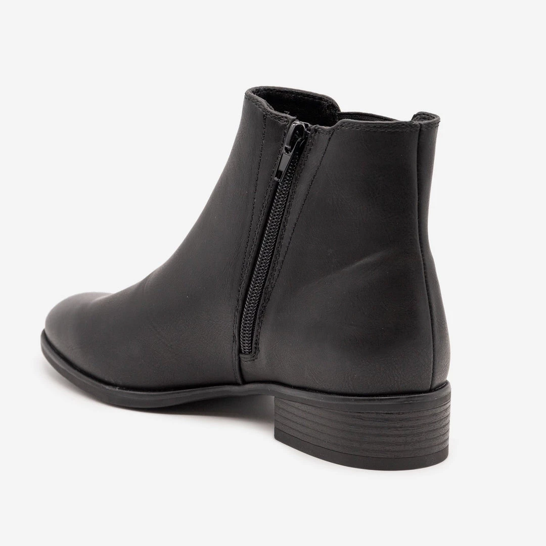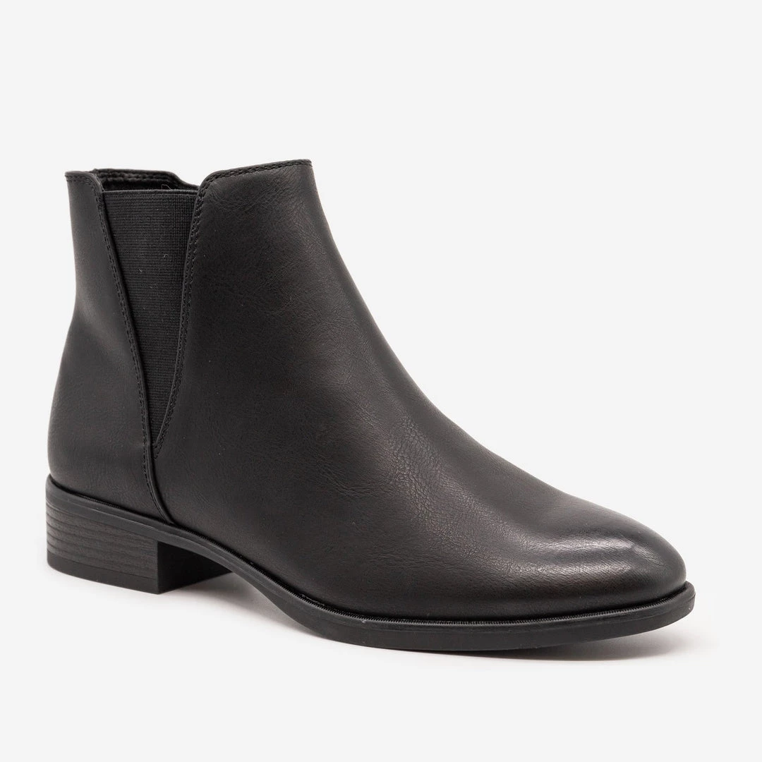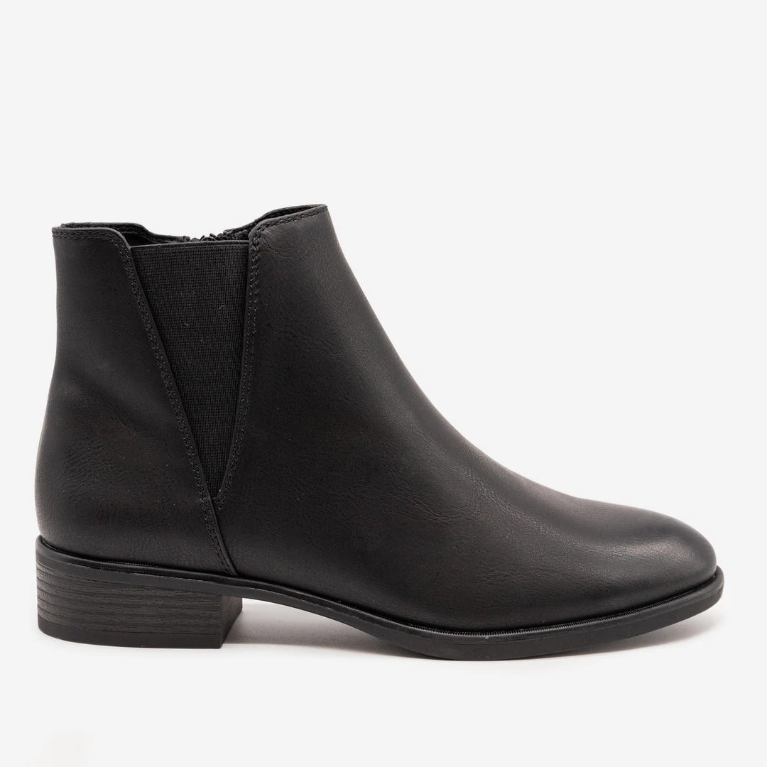 Stay stylish with our new Novo Doja low heeled modern day boot! These gorgeous and comfortable boots are patent with a full faux leather body for a sleek look. Featuring a side-V stretch material and usable inner zipper make these shoes the perfect pair of fashionable on-the-go boots! With an approx. 1.25” heel you’ll never have to sacrifice comfort for style again!. Pair these must-have boots with black fitted skinny jeans, cami in your choice of color and a blazer for a smart casual fit! This shoe is man-made with all vegan materials. Take your perfect size as these shoes run true to size!