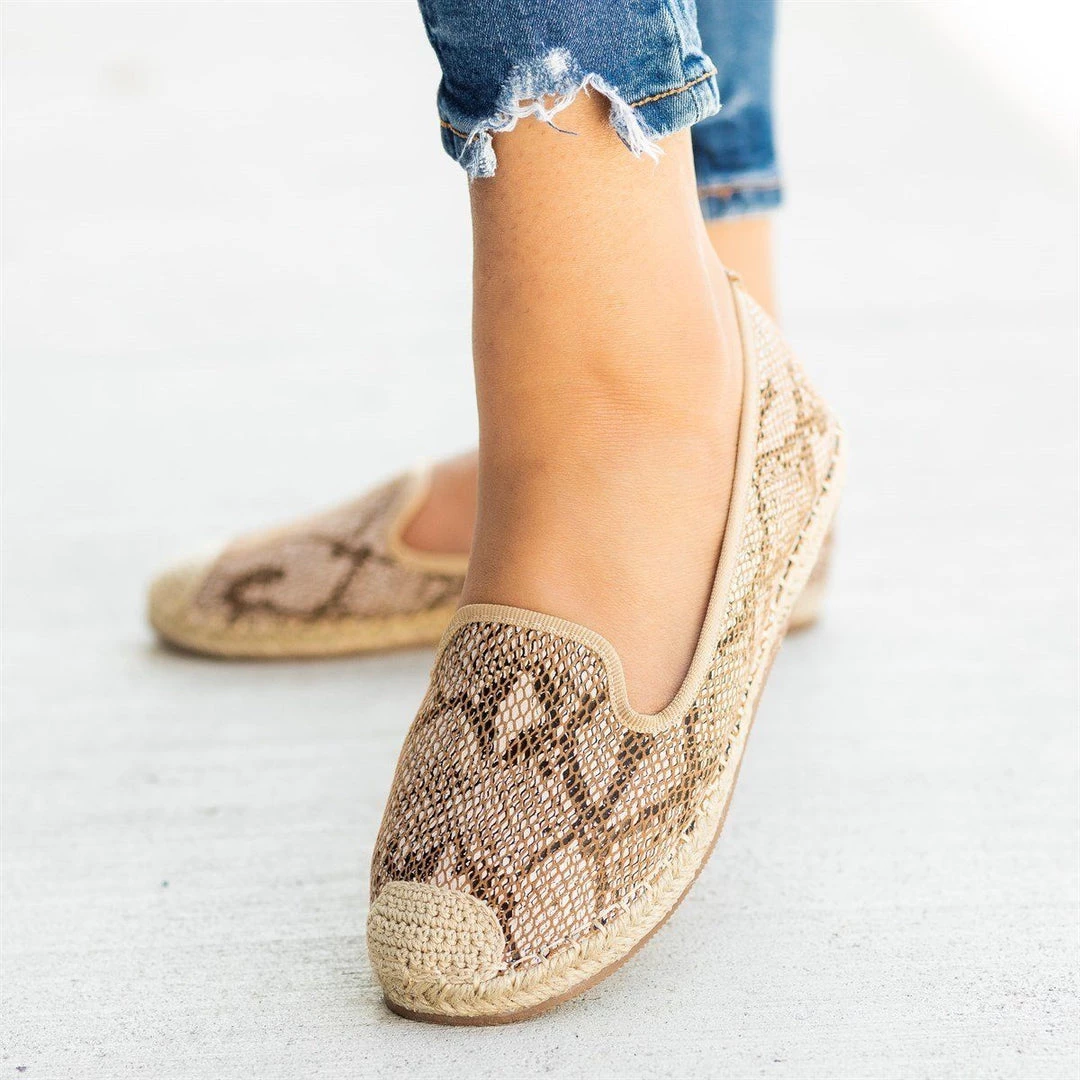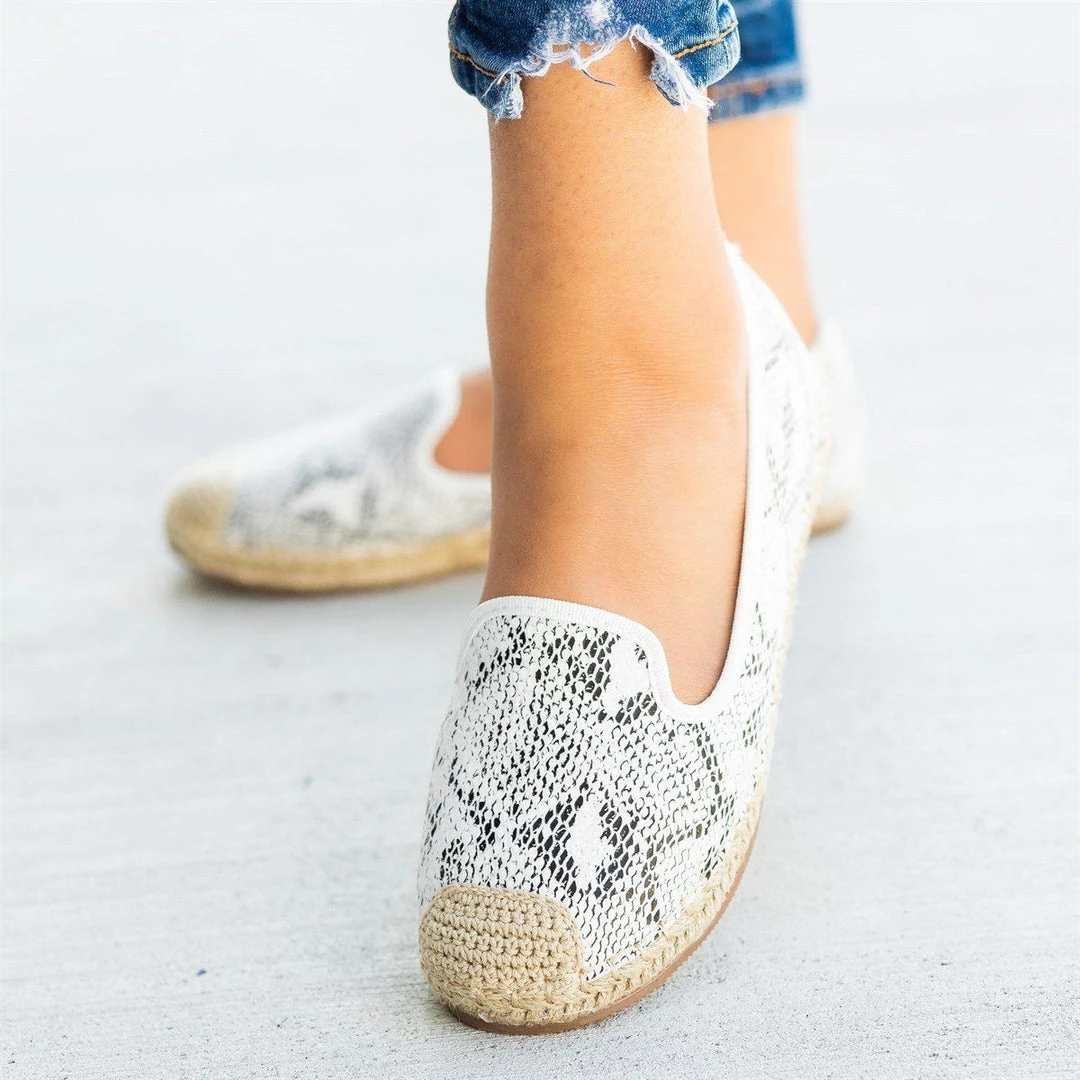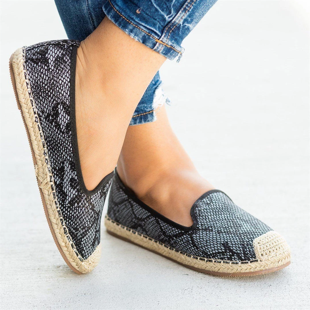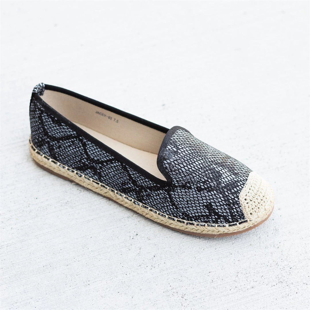 Step into a pair of these Pazzle Shoes Jacey-03 espadrille flats for the perfect way to complete your outfit! These flats are made out of faux leather and feature a trendy snake print design. The slip-on style makes it super easy to put these shoes on and take off, while the espadrille-style design gives these shoes an adorable look. Wear these flats with a pair of cuffed denim high-waisted shorts and a knotted vintage band tee for a cute and casual summer outfit! Made with all man-made/vegan materials.