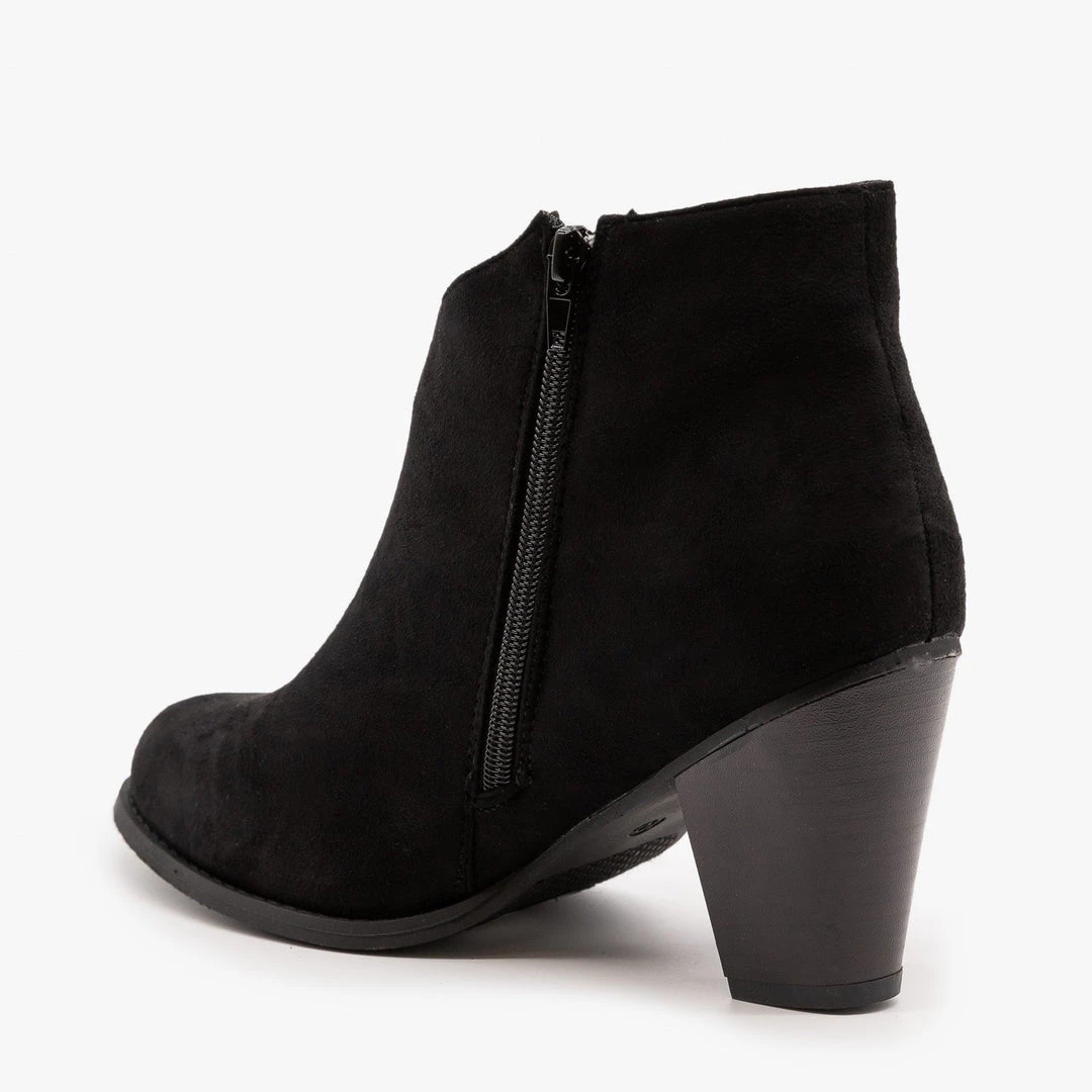 We love these fun fringe Pierre Dumas Shoes Denny-01 booties! Designed from faux suede, these adorable booties have an almond shaped toe and an approx. 3” angled block heel to give you some sass. A side zipper makes them easy to slip on and off. Fine fringe on the outside gives these booties a beautiful Western touch while staying modern and chic! Pair these booties with a pair of dark high-waisted skinny jeans, a fitted tee and a cropped jacket to make the perfect outfit for a day at an orchard! Made with all man-made/vegan materials and runs true to size.