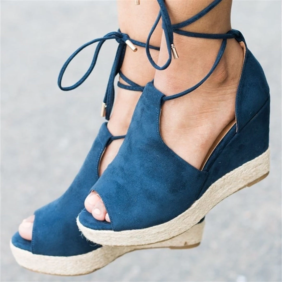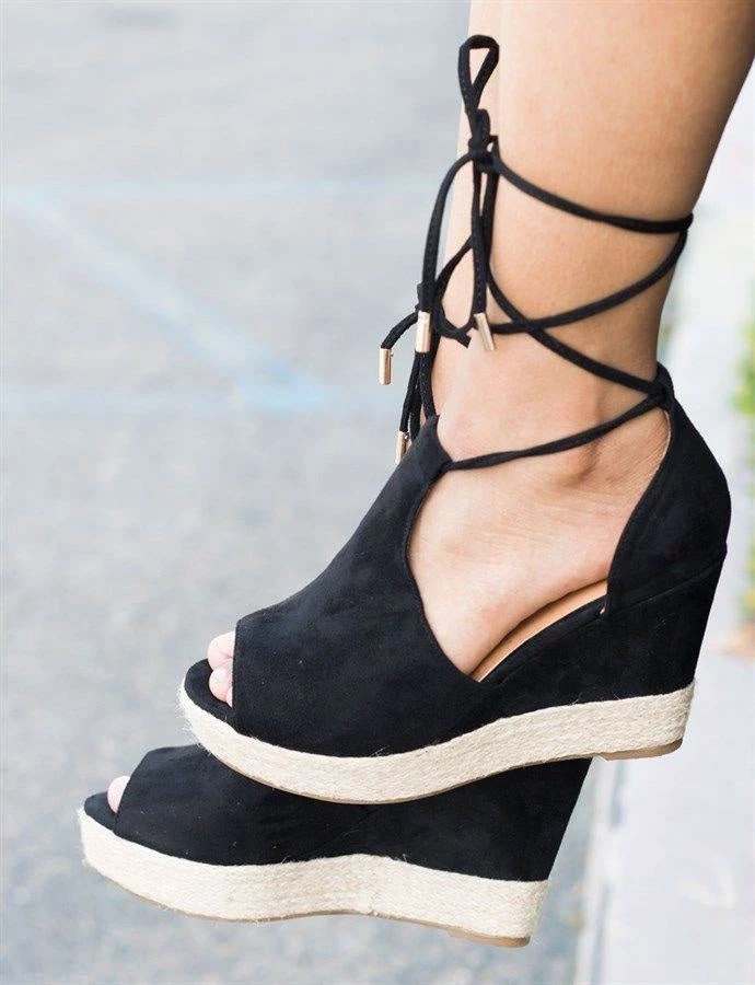 Wedges are perfect for all year ’round and our Qupid Drake-01 are the perfect pair to go along with all your dressy/casual outfits! They are crafted from a soft faux-suede material that have a delicate peep-toe front, side cut-outs and lace-up detailing. The espadrille wedge pulls the entire look together and makes them pair perfectly with black jeans or a flowy summer dress!Â
