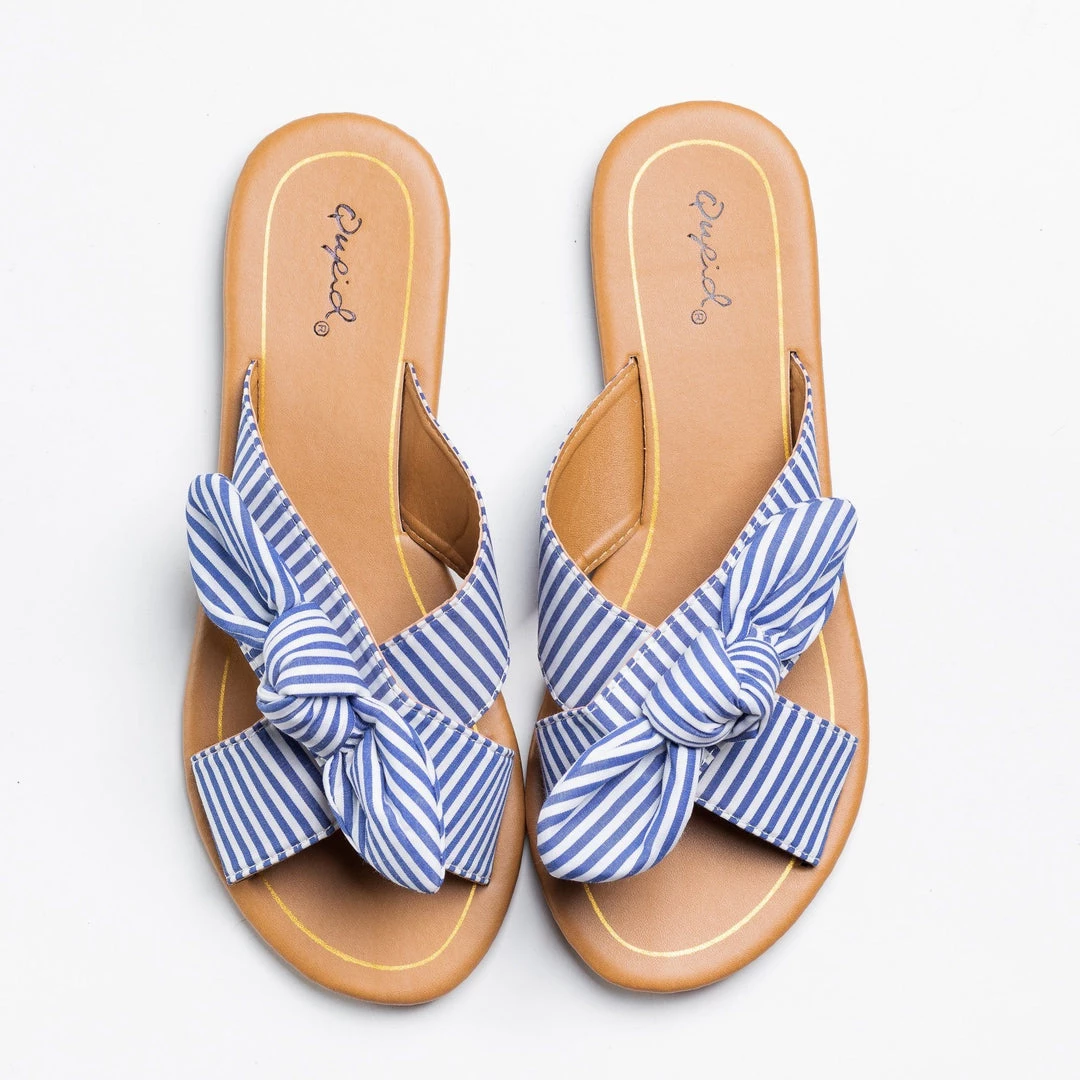 Put some pep in your step with the Qupid Shoes Autumn-06X slip-on sandals! These beautiful sandals are made with canvas material and feature an easy-to-wear slip-on design. Available in a variety of colors and prints, these gorgeous sandals also feature a lovely bow accent on top of the criss-crossing straps. You can wear these sandals with a lovely sundress and a floppy hat for the perfect summer outfit! Made with all man-made/vegan materials.
