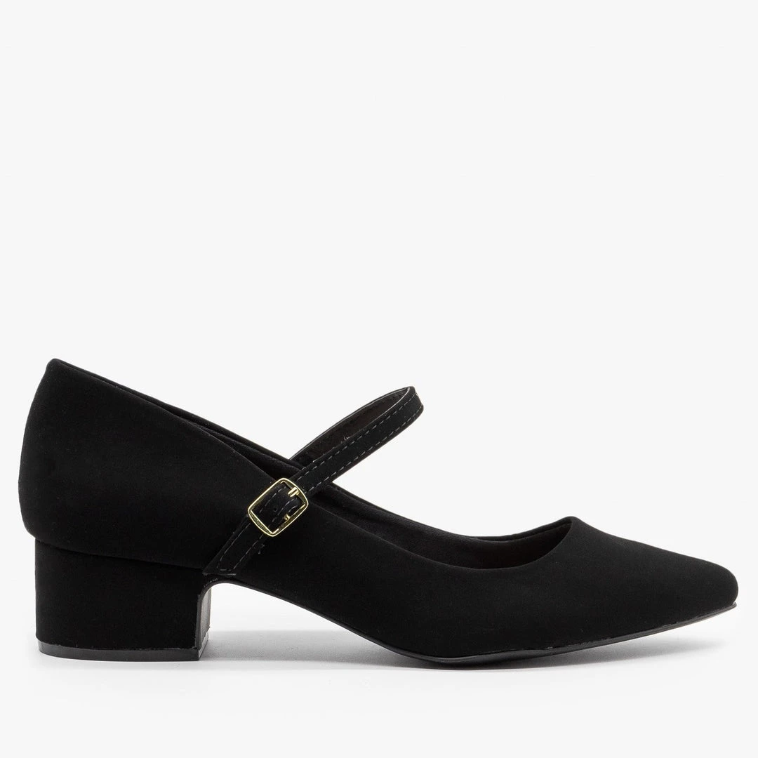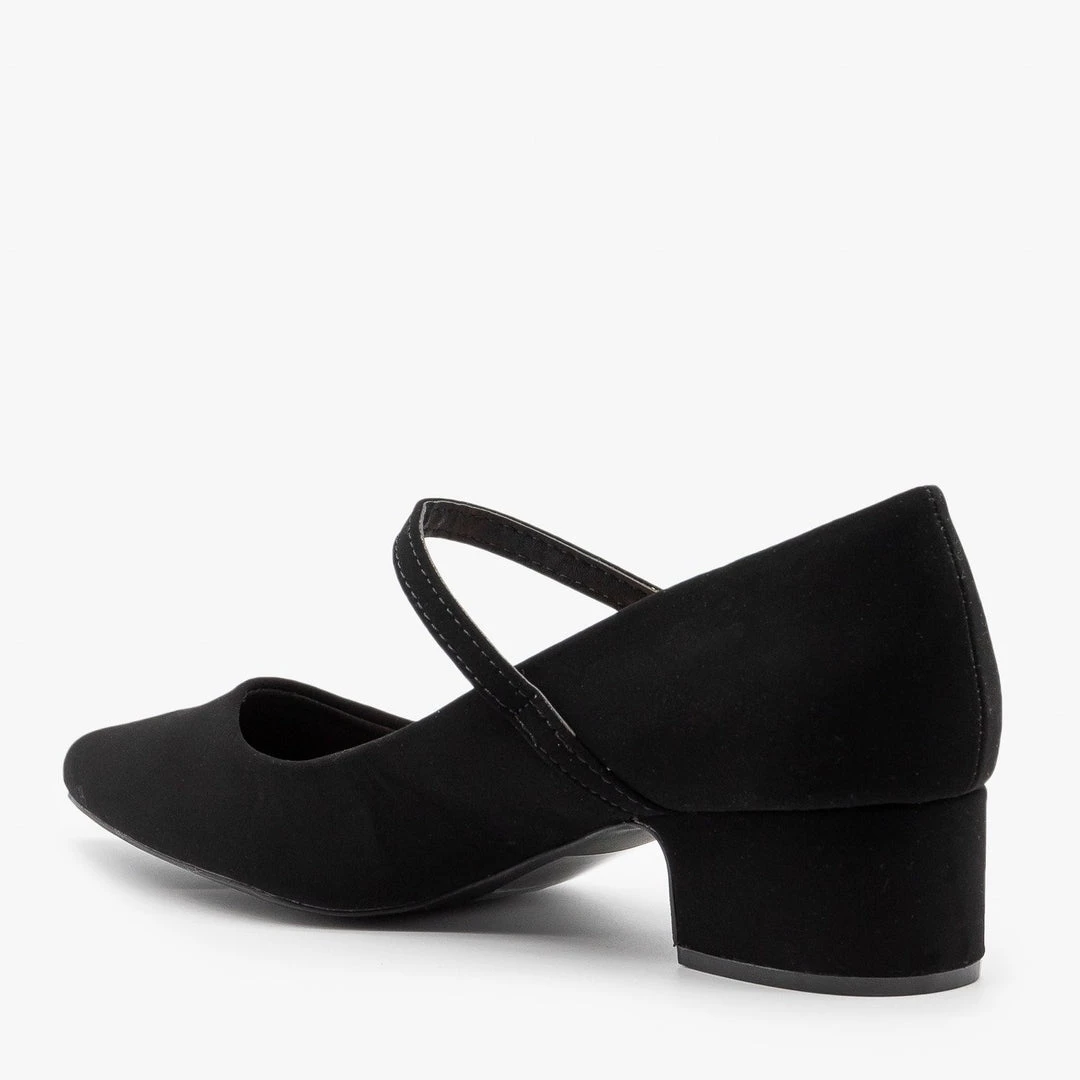 It’s hard to go wrong with these timeless Qupid Shoes Swing-39 pumps! Designed with faux nubuck, these beauties feature a low chunky block heel and a sleek pointy toe. A single thin strap crosses at the center of the foot and clasps with an adjustable buckle, putting just a touch of decor on these otherwise monochrome shoes. The matte black makes these heels perfect for pairing with nearly any look! Dress up classic jeans and a tee by adding these pumps or style them with a fitted dress and jacket for a busy day at the office! Made with all man-made/vegan materials and runs true to size.