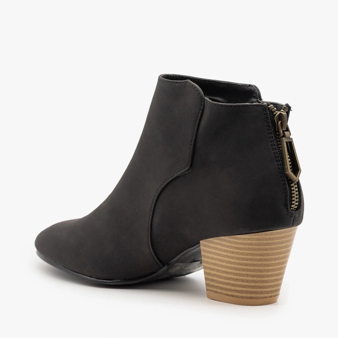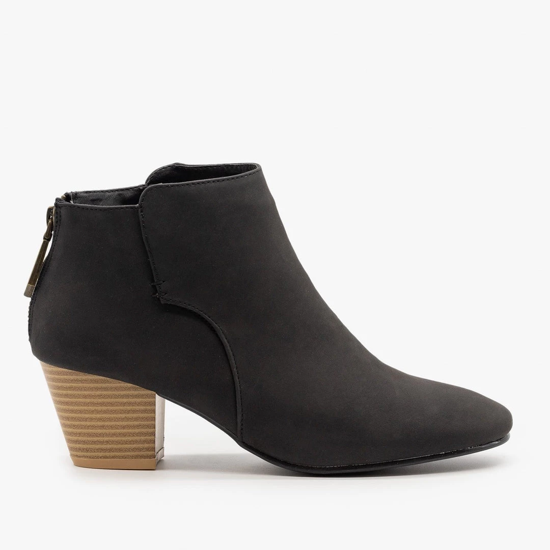 These Qupid Shoes Scout-03 booties are an essential for the fall shoe wardrobe! Crafted with faux nubuck, these booties feature a lovely narrow almond shaped toe and a 2.5″ heel that gives you the perfect amount of height. The body is simple, with the two sections of the shoe sewn together on the sides and accented with subtle oversized stitches. A short back ankle zipper lets you slip these booties on and off with ease. Try wearing them with wide legged, high waisted pants and a cropped sweater for a stylish fall look! Made with all man-made/vegan materials and runs true to size.