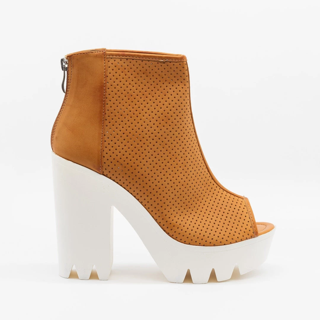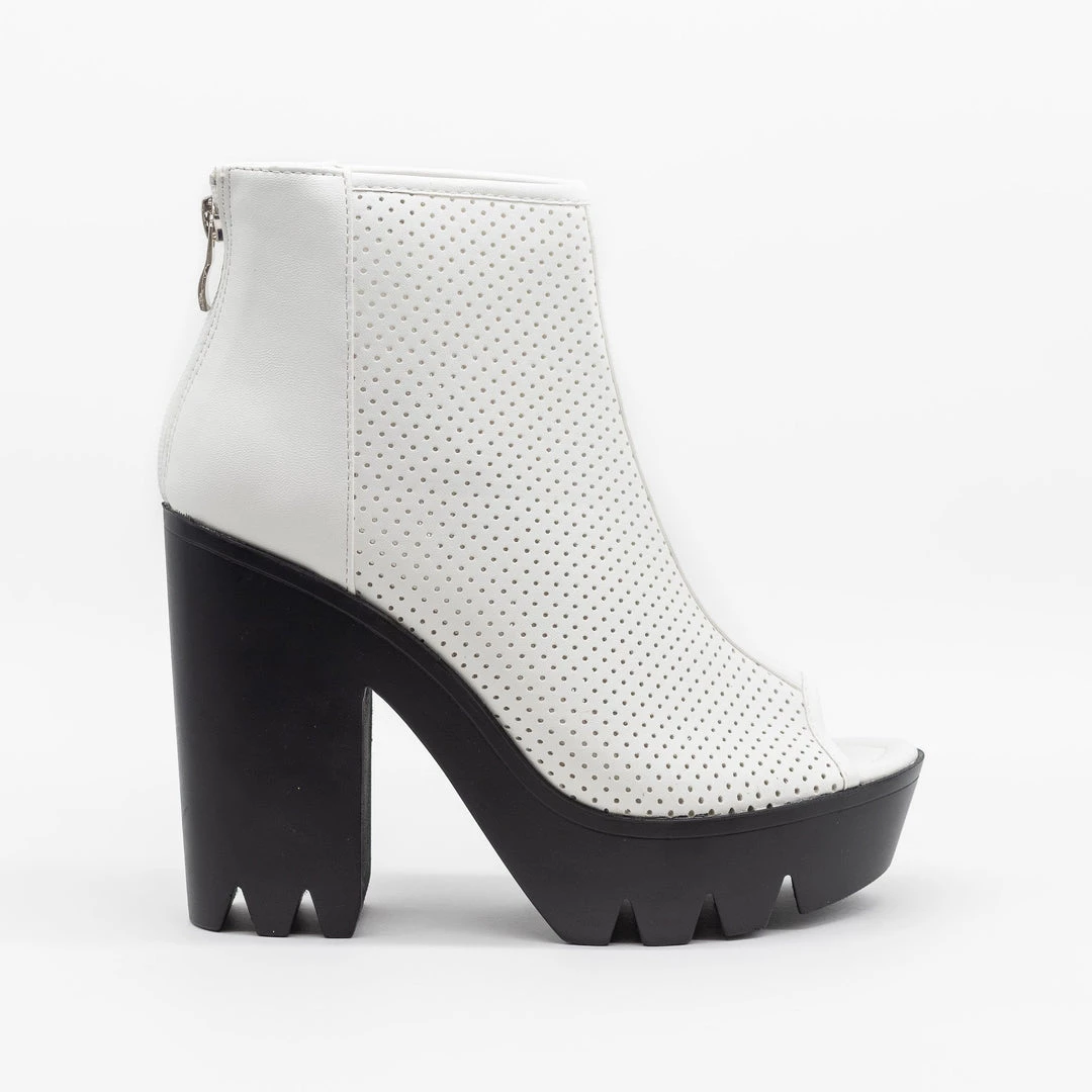 Walk the walk in these Qupid Shoes Crank-02 edgy pinhole platform lug sole heels. They are gorgeously crafted with faux suede material and features a peep toe, pinhole detailing, back zippers, approx. a 4.15″ chunky heel, and a deep rigid platform sole. Style them with a square bottom cut mini dress for a stylishly posh look! Made with all man-made/vegan materials and fits true to size.Â