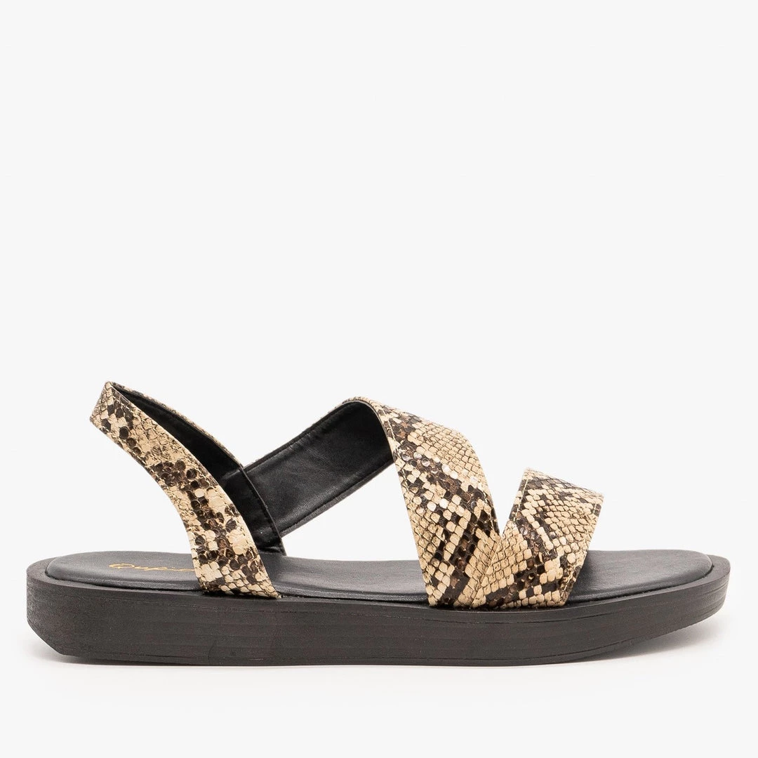 Qupid Shoes Edgy Snake Print Sandals
