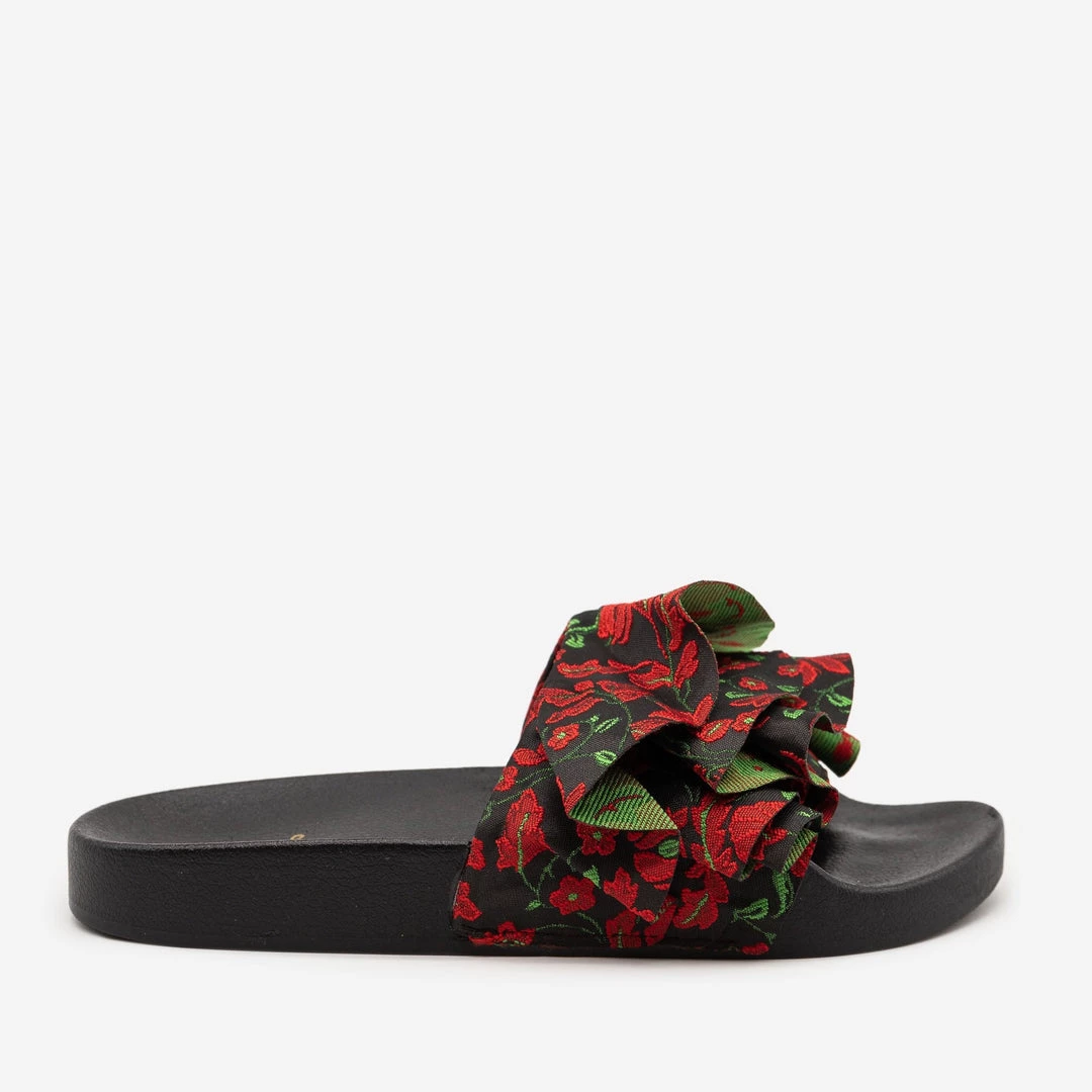 Qupid Shoes Floral Ruffled Slides