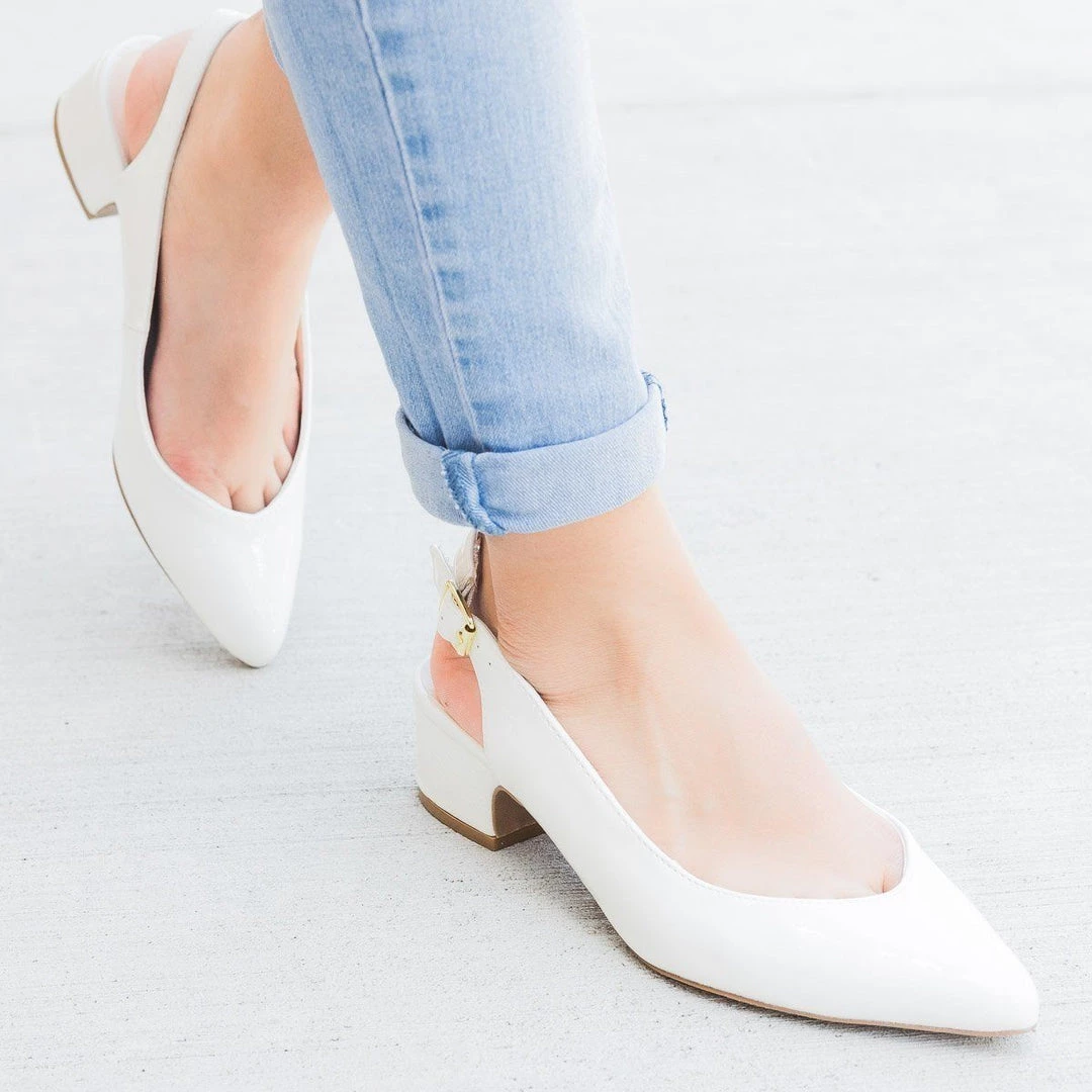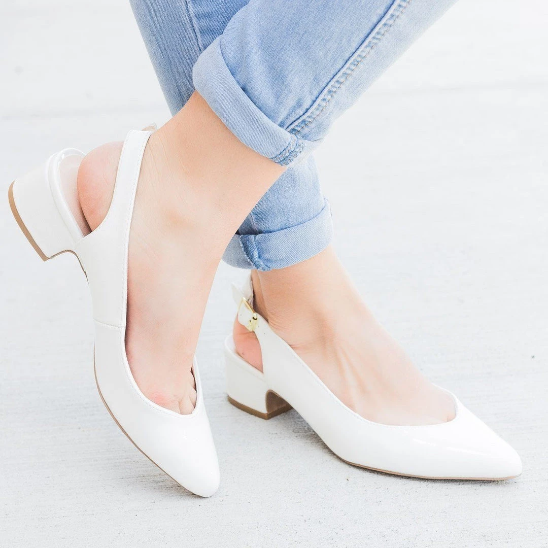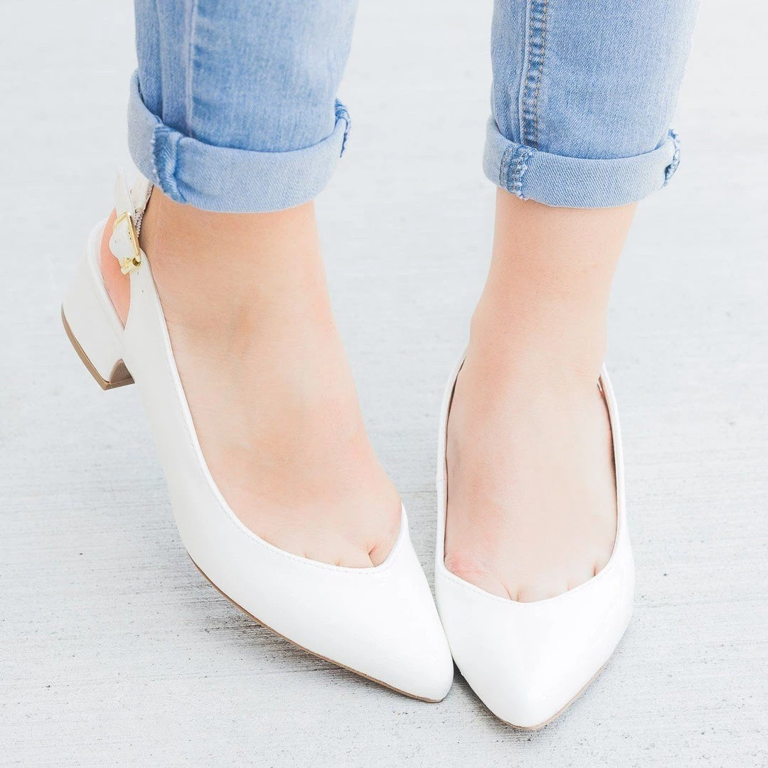 Be the talk of the town with the Qupid Shoes Swing-18 slingback flats! These adorable shoes are made out of crinkled faux leather material and feature a darling almond-shaped toe. The adjustable slingback-style ankle strap also offers extra comfort and support to these cuties! The 2″ block heel also adds a bit of height without sacrificing any comfort. Available in two different colors, these shoes will go with anything in your wardrobe! Wear these with some raw cut ankle jeans and a flowy button-up top for a laid-back, but sweet weekend look! Made with all man-made/vegan materials and fits true to size, these lovely flats are bound to be a show stopper!
