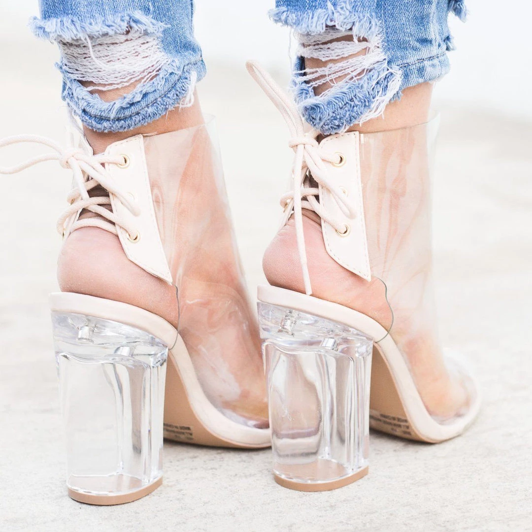 Qupid Shoes Newest Arrivals Chic Clear Heel Lace-up Booties