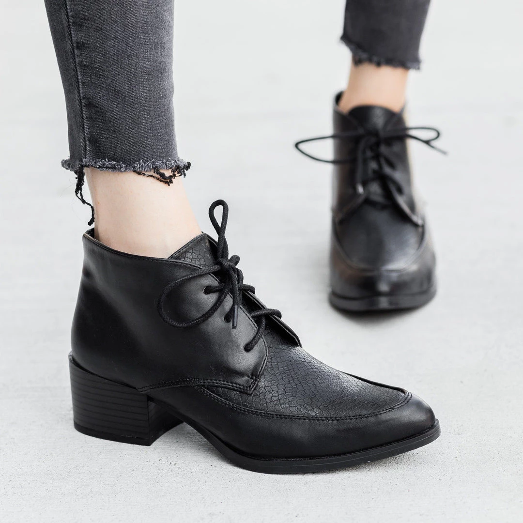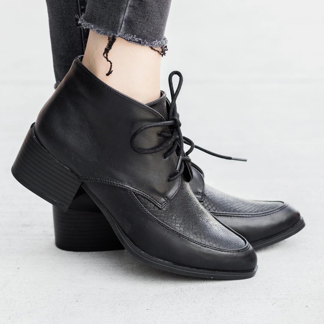 Strut your stuff like the fashionista you are with these Qupid Shoes Wasco-05 ankle booties! Beautifully crafted out of faux leather, these booties feature a lace-up style and a 2″ chunky heel for some height and edge. The almond-shaped toe gives these shoes a chic look while the textured design on the front of the shoe adds a lovely finishing touch. Pair these booties with some raw hem cropped wide-leg jeans and a vintage band tee for the perfect cool girl look! Made with all man-made/vegan materials.