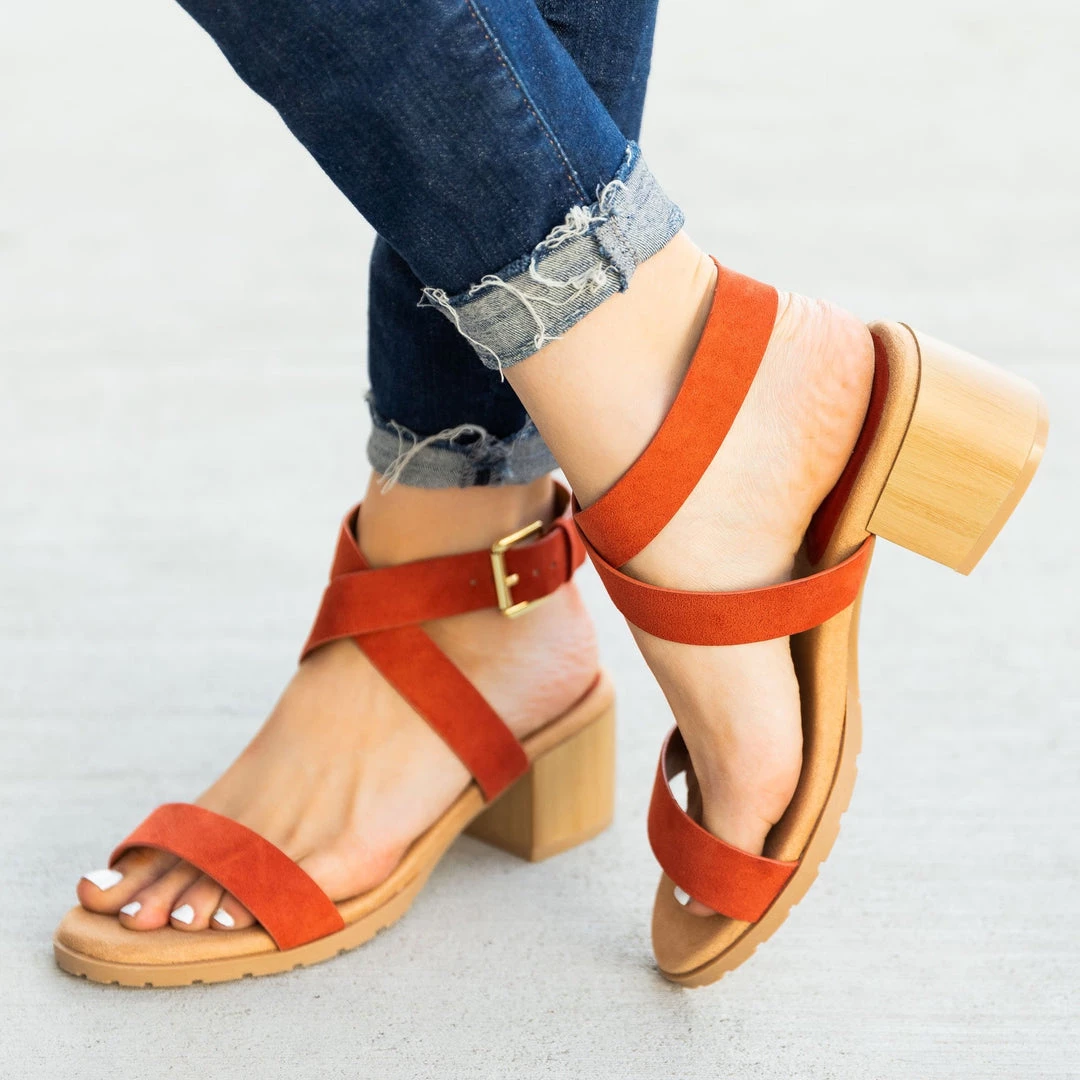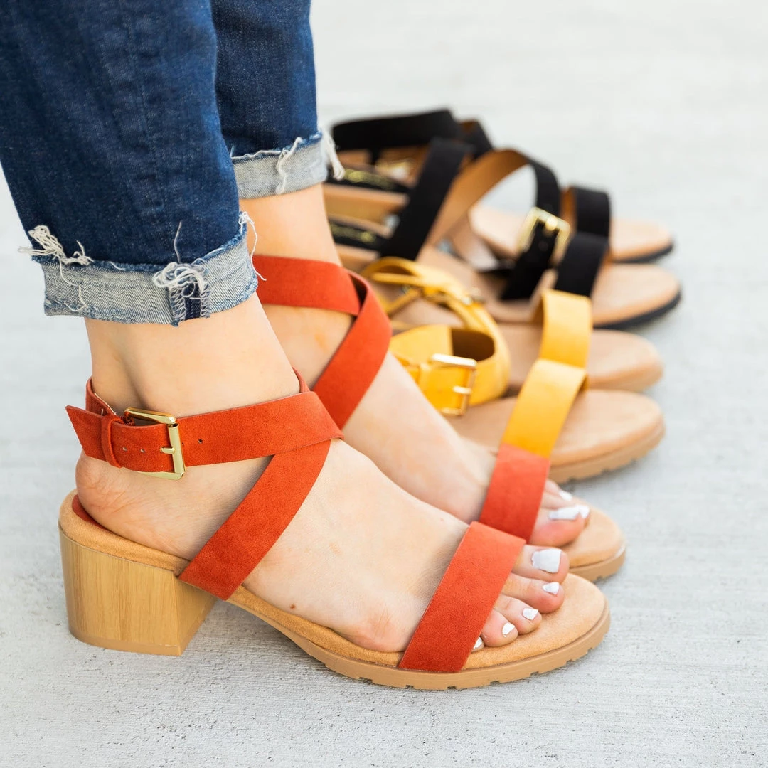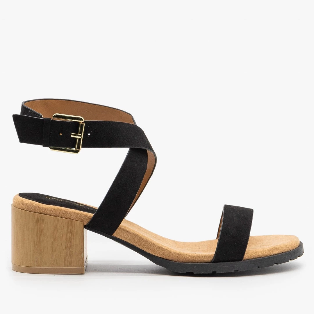 These gorgeous Qupid Shoes Barden-15E give you class and style all wrapped up in one! Crafted with faux suede, these sandals feature an approx. 2.5″ faux wooden chunky heel and a simple open toe design. A single band crosses the lower foot and two more bands cross in front of the ankle and clasp together on the outer ankle for a sleek modern looking design. Available in a classic black and two beautiful muted earth tones, these heels are perfect for all your spring and summer looks! Pair them with straight leg beige denim with a raw hem, a simple black top and a long blazer for an upscale spring look! Made with all man-made/vegan materials and runs true to size.Â