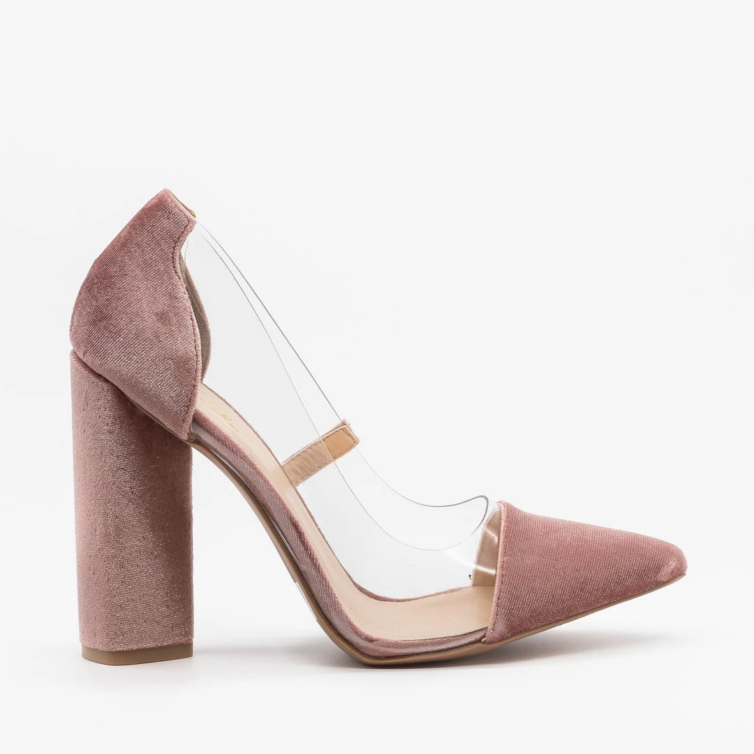 Walk the runway in these fashionable Qupid Shoes Miss-02 pointed toe heels! Crafted out of soft velvet material, these heels feature a posh pointed toe design and a 4″ chunky heel for style and height. The slip-on style makes these shoes easy to put on and take off while the clear design on the sides of the shoes make these heels extra trendy. You can pair these shoes with some high-waisted ankle jeans and an off-the-shoulder top for gorgeous dressed-up look! Made with all man-made/vegan materials.
