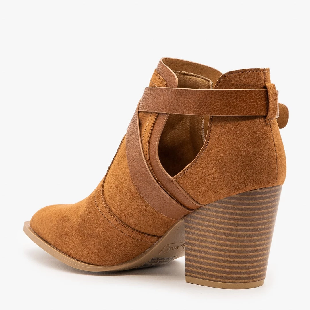 Kick up your heels in the Qupid Shoes Prenton-81XX booties! These booties are beautifully crafted out of faux suede and feature two faux leather straps that criss cross in the middle and are fastened with buckles on the side. These booties also feature a trendy cutout on both sides of the shoe, making these booties super stylish. The 3″ stacked chunky heel gives you some height while the almond-shaped toe adds some extra style to these shoes. You can wear these booties with just about anything! Wear these with distressed ankle jeans and a cropped boxy button-up top for a cute and casual outfit! Made with all man-made/vegan materials.