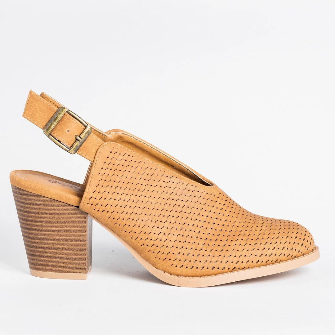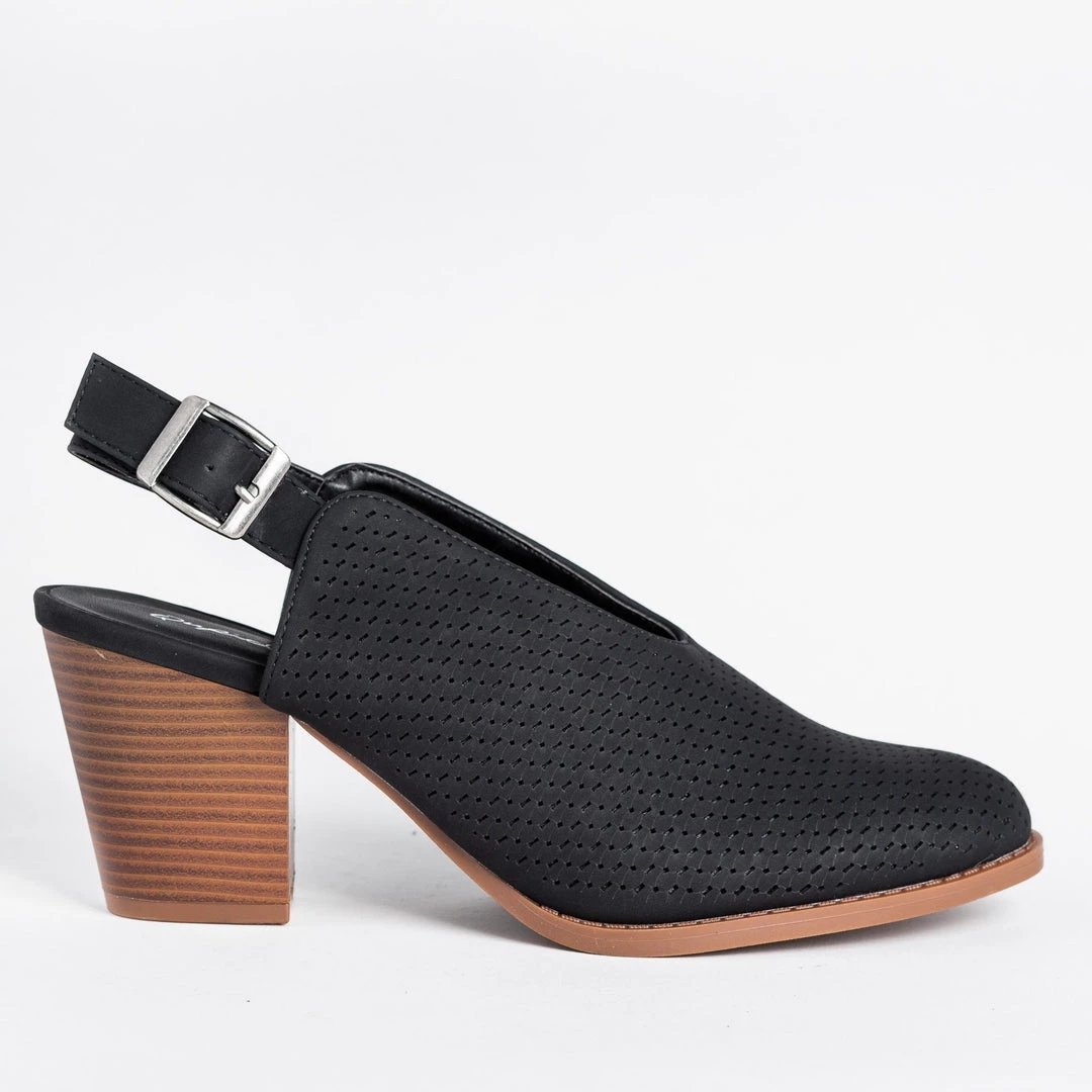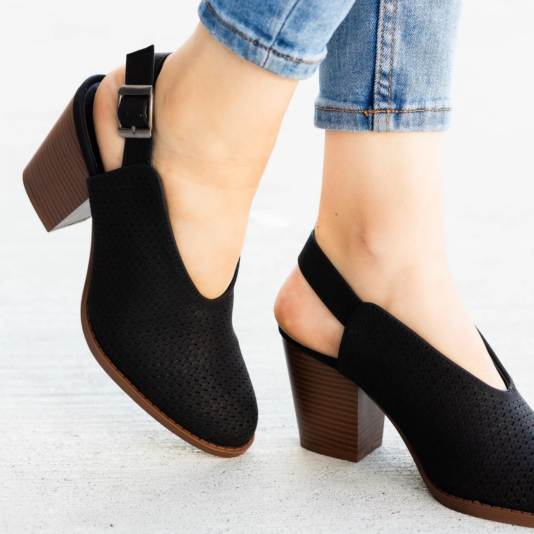 Put your best foot forward with the Qupid Shoes Tyson-19 heeled booties! These beautiful shoes are made out of faux nubuck and feature a gorgeous laser-cut design and a cutout on the top of the shoe. The almond-shaped toe gives these shoes a touch of style, while the adjustable ankle strap and 3″ stacked heel make it easy to walk around in these shoes. Pair these booties with some ankle jeans and a button-up chambray top layered over a basic tee for a super cute outfit! Made with all man-made/vegan materials.