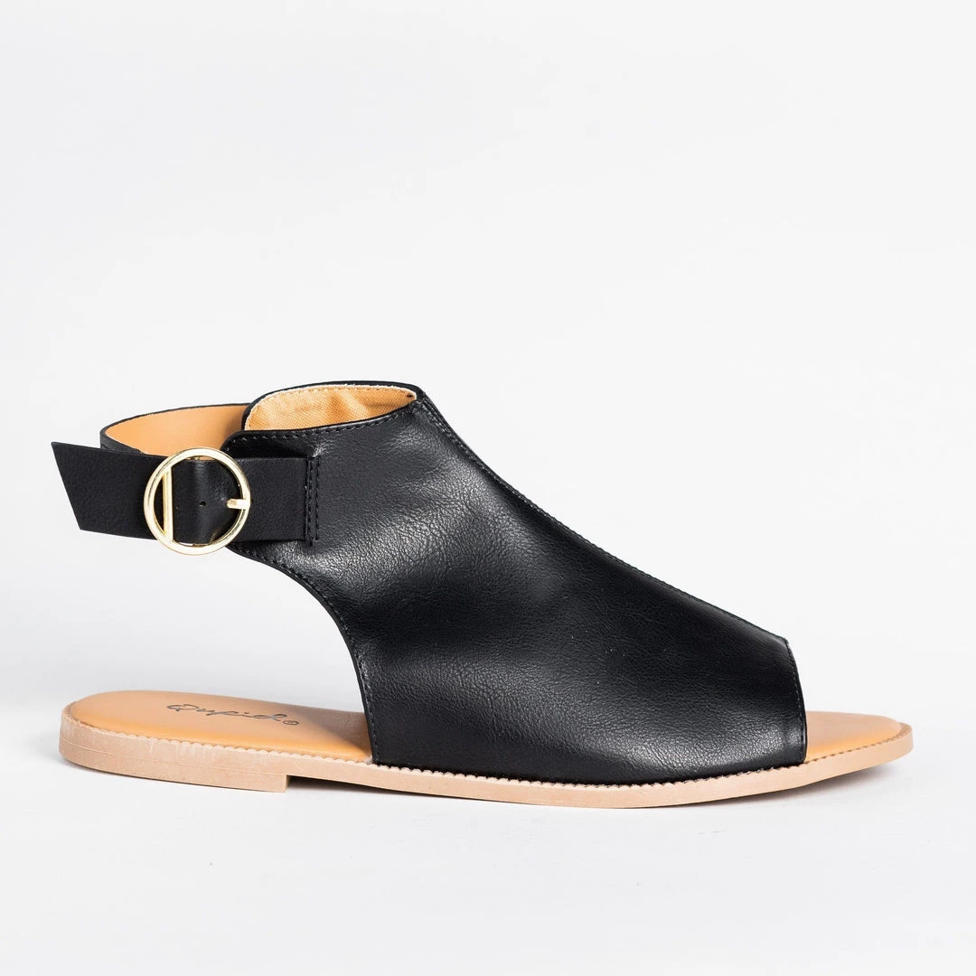 Strut your stuff in style with these beautiful Qupid Shoes Desmond-53 mule sandals! These lovely sandals are made out of faux leather and feature a trendy mule style design and a fashionable open-toe. The adjustable ankle strap provides easy on/off access and extra support so you can wear these shoes all day, everyday. Pair these sandals with a floral midi dress for a super cute bohemian look! Made with all man-made/vegan materials.
