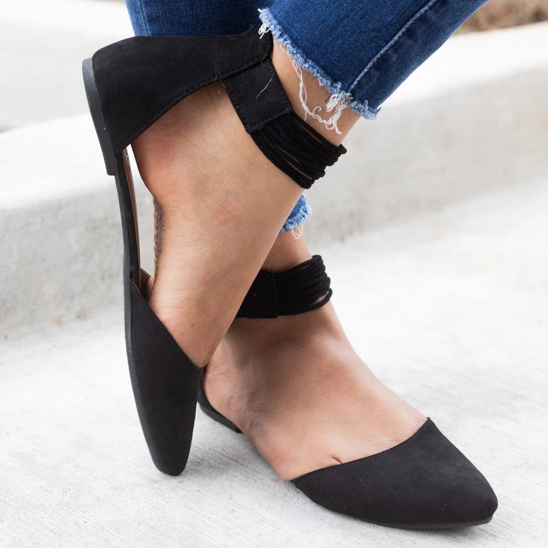 Make room in your shoe closet because our Qupid Pika-171 flats are a season must have! They are crafted from a soft faux-suede material and feature a closed toe front that falls into a slight pointed toe. A think buckled ankle strap has a fringe-like design that adds some cute detailing. Pair with a tennis skirt and a cute halter neck printed top for a cute and girly outfit. The Rosegold style features a snake print design with rosegold detailing.Â