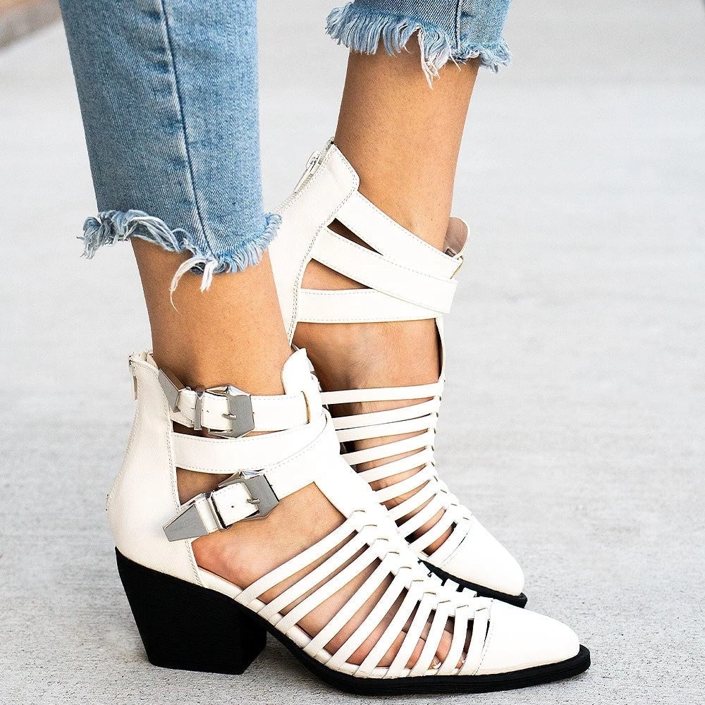 Qupid Shoes Newest Arrivals Pointed Buckle Caged Booties