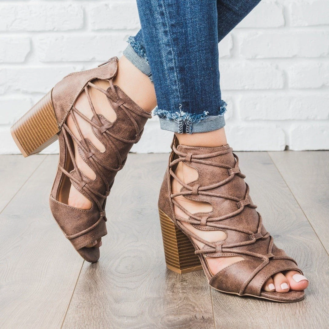 Qupid Shoes Newest Arrivals Rustic Peep Toe Heel Booties